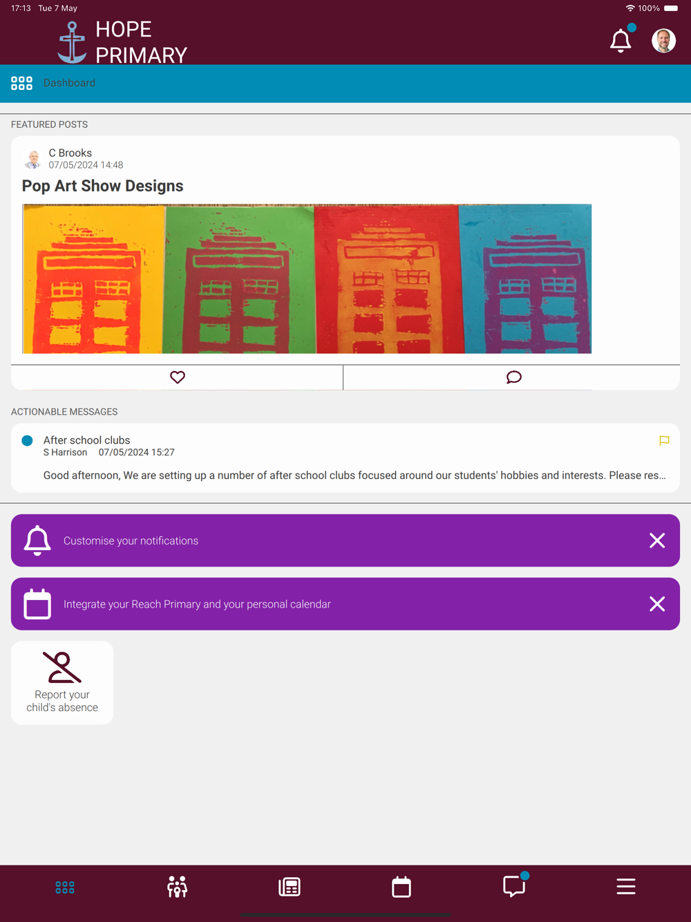 This app is Hope Primary School's own parent engagement and communication app and it is designed to enhance communication between the school and parents of our students.