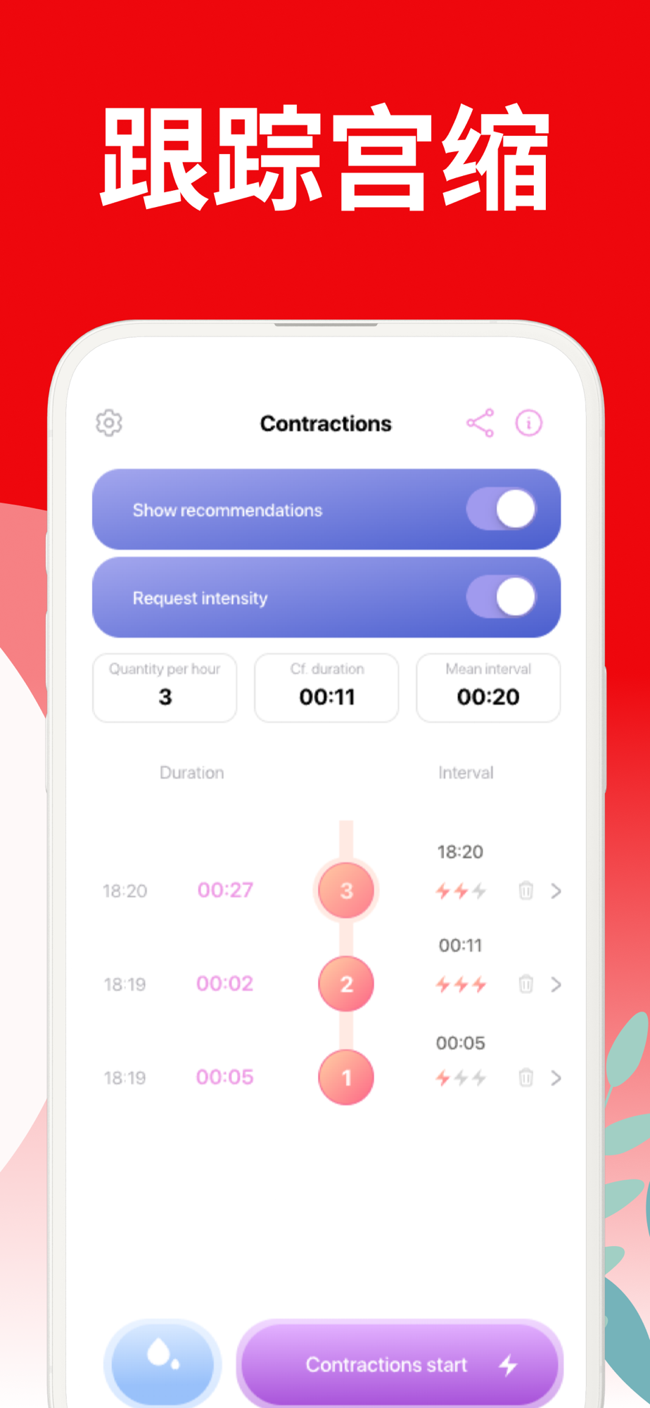 只需通過按下每個按鈕的按鈕來測量一些收縮即可。該應用程序將分析其持續時間和頻率,以確定何時該去醫院。