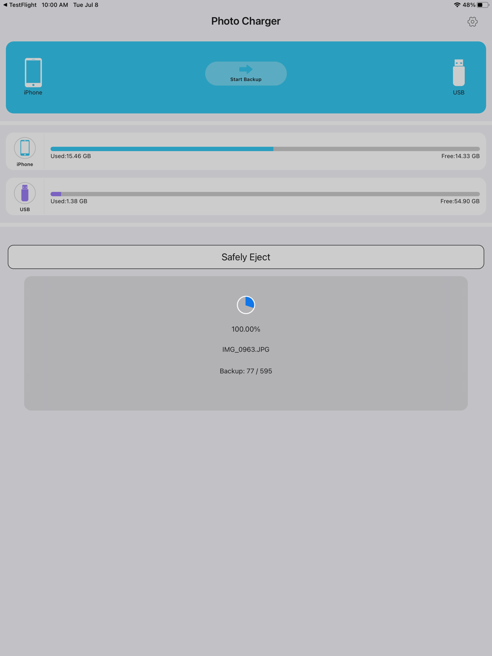 1, USB3.0 A, to connect to Mac or PC. In this way,PhotoCharger acts as a general USB drive. Users can manager files in it, copy, cut, past or delete, ect. Users can also browse files in it directly, including preview documents, playback music and movies.