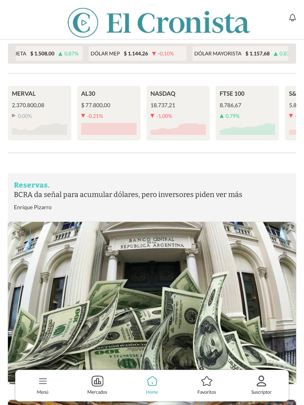 Descargá ahora la app de El Cronista y transformá la manera en que te informás sobre economía, finanzas, dólar e inversiones. Disfrutá de noticias relevantes, análisis expertos y datos de mercado en una experiencia limpia, rápida y totalmente personalizada.