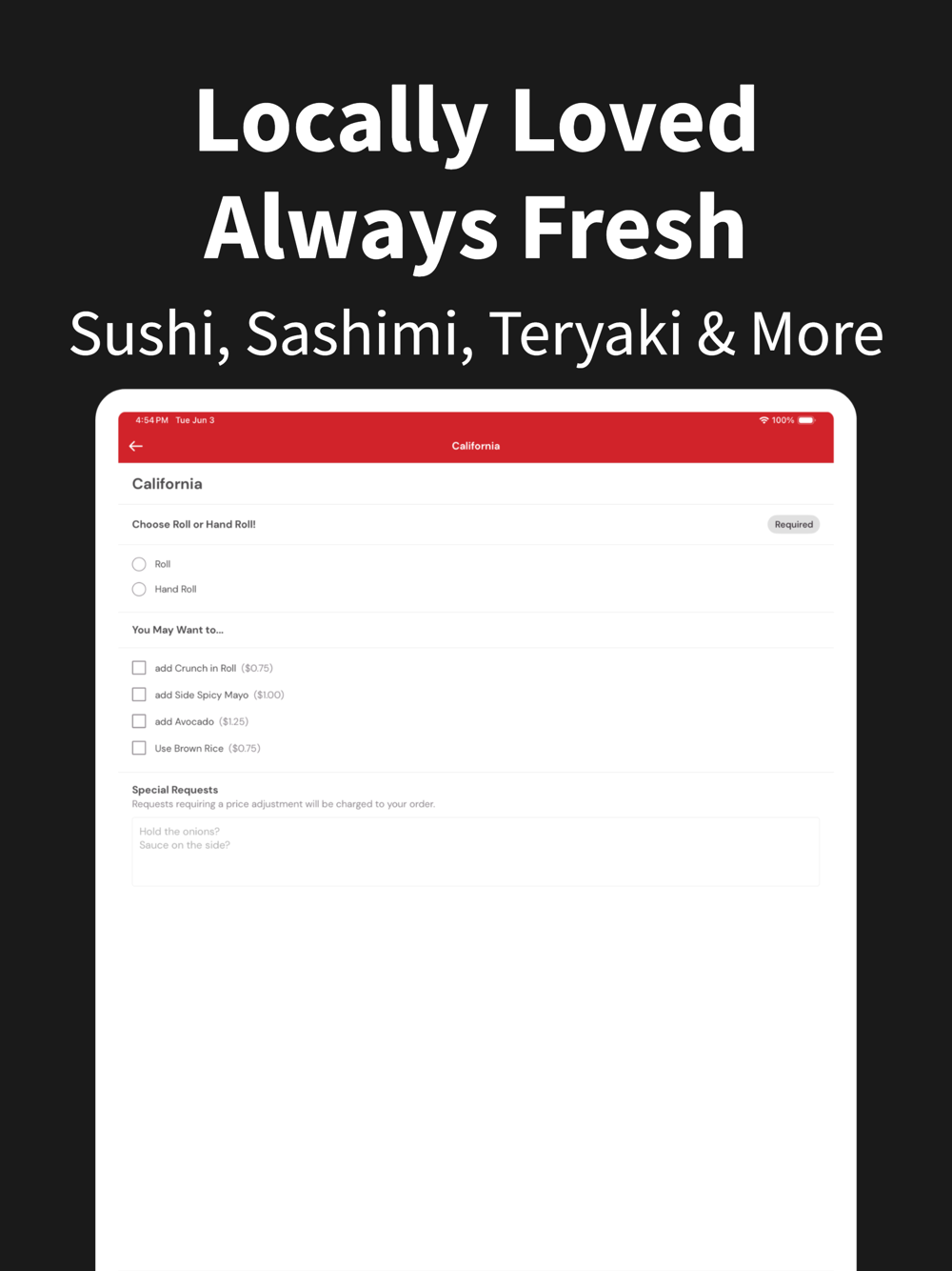 Easy Ordering – Seamlessly browse our full menu, including sushi rolls, sashimi platters, teriyaki entrees, noodle dishes, and more.