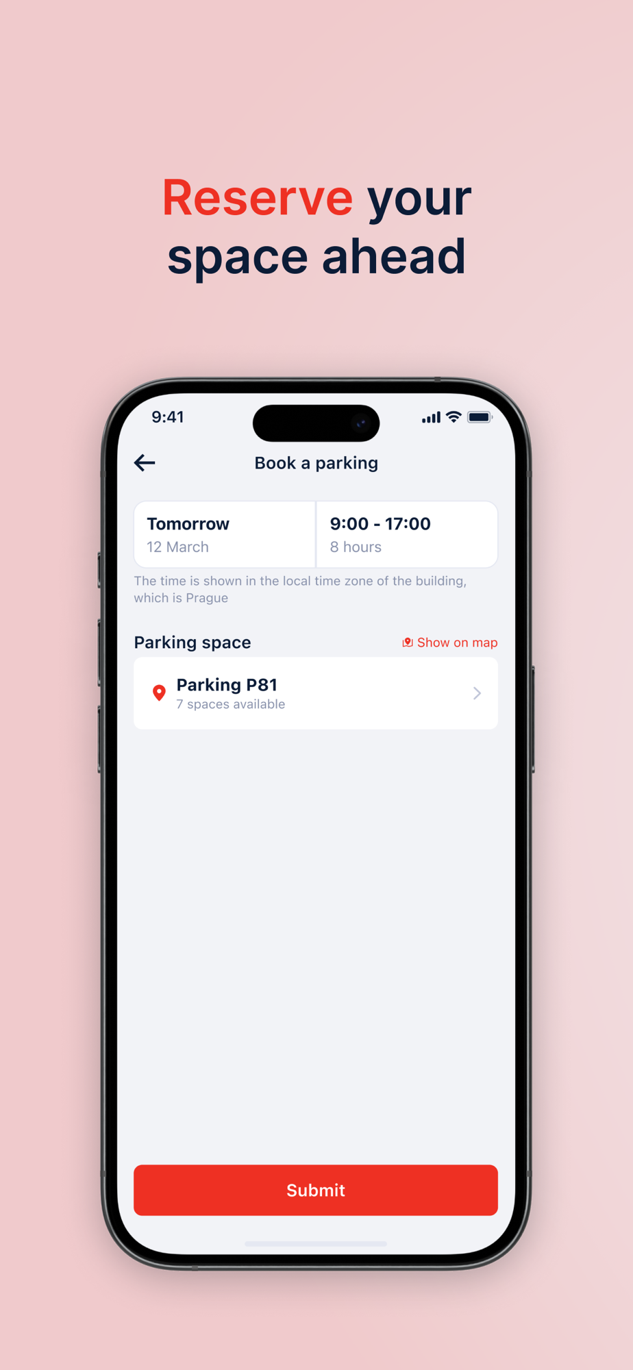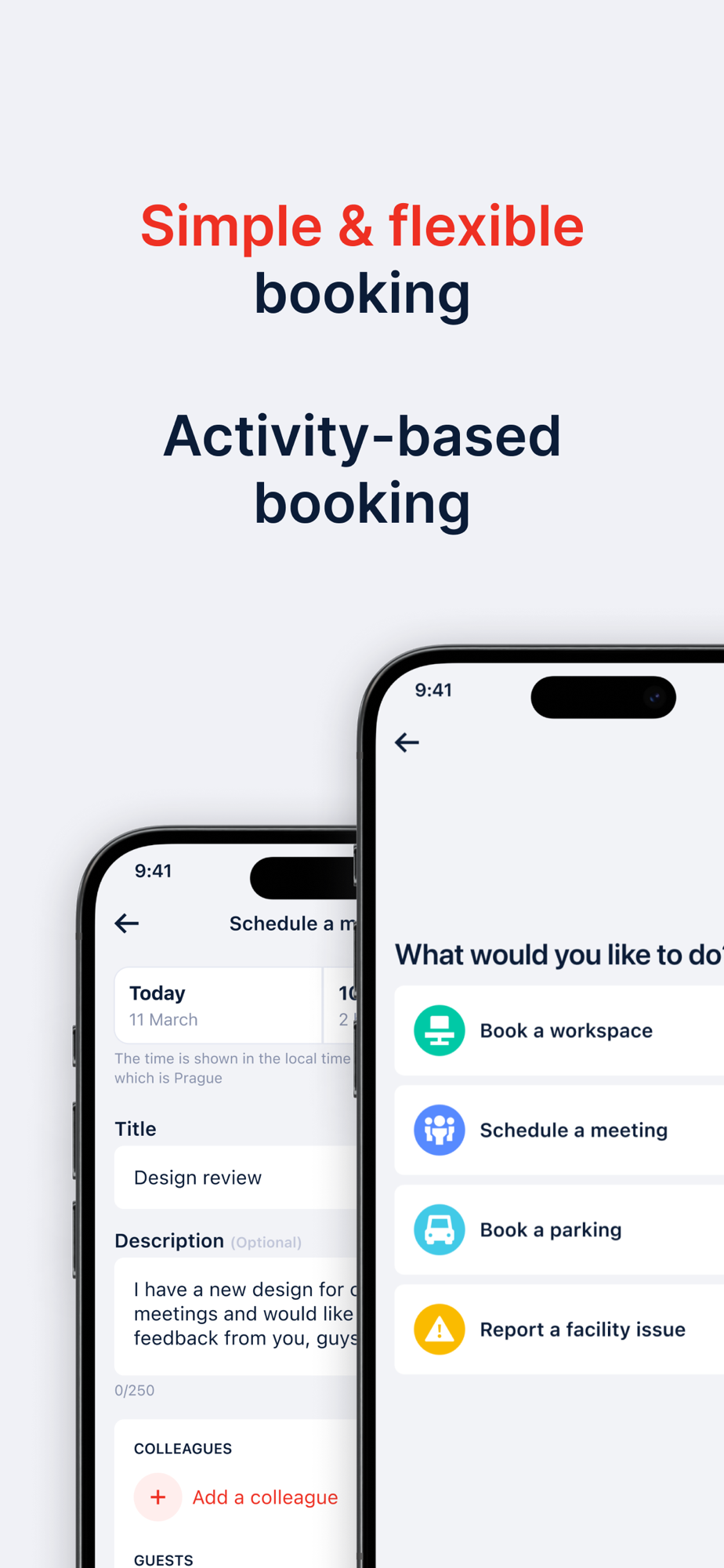 - Search and create bookings of available Workstations and Parking Spaces