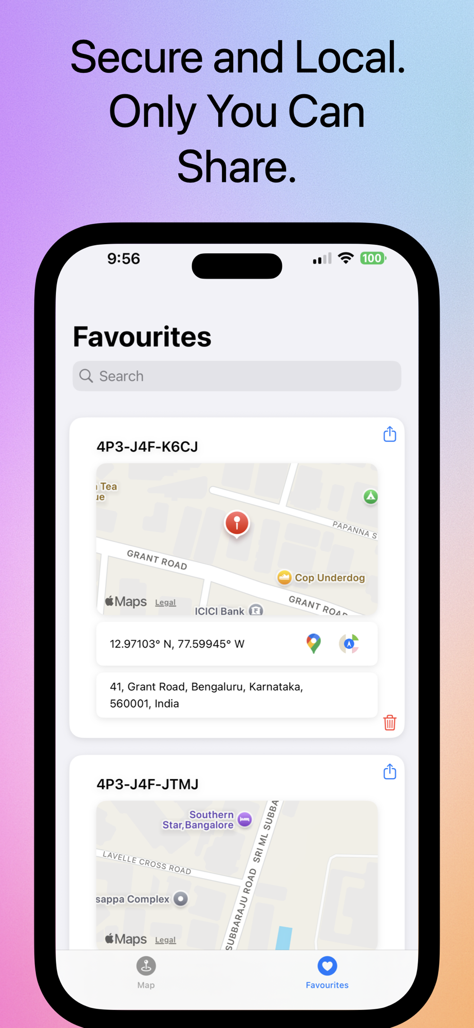 Your saved pins are stored privately on your device—secure and accessible only to you.