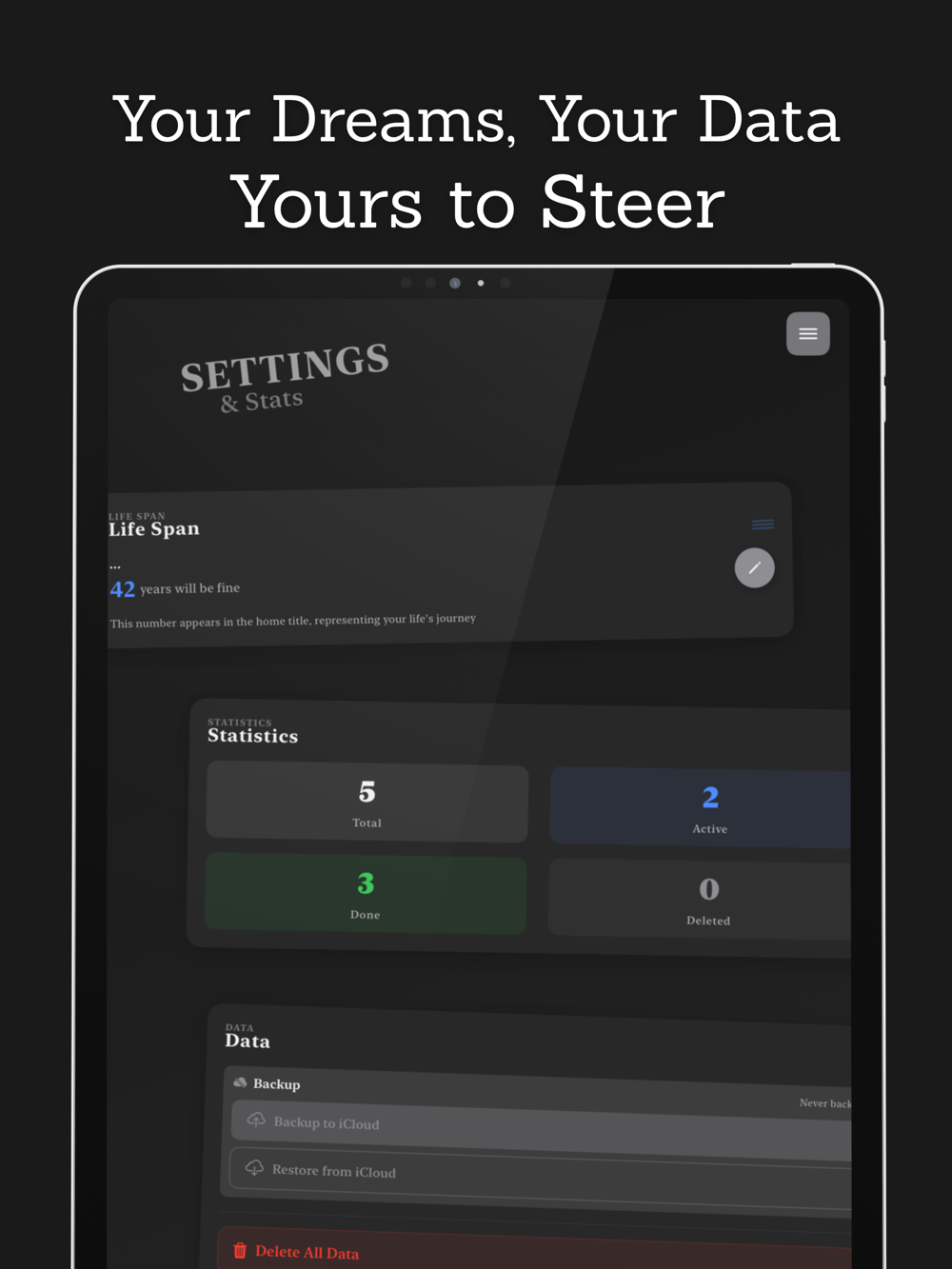 Your dreams are personal. All data is stored directly on your device or in your private iCloud storage - this app doesn't connect to any external servers. Your backups are entirely controlled by you through manual iCloud syncing.