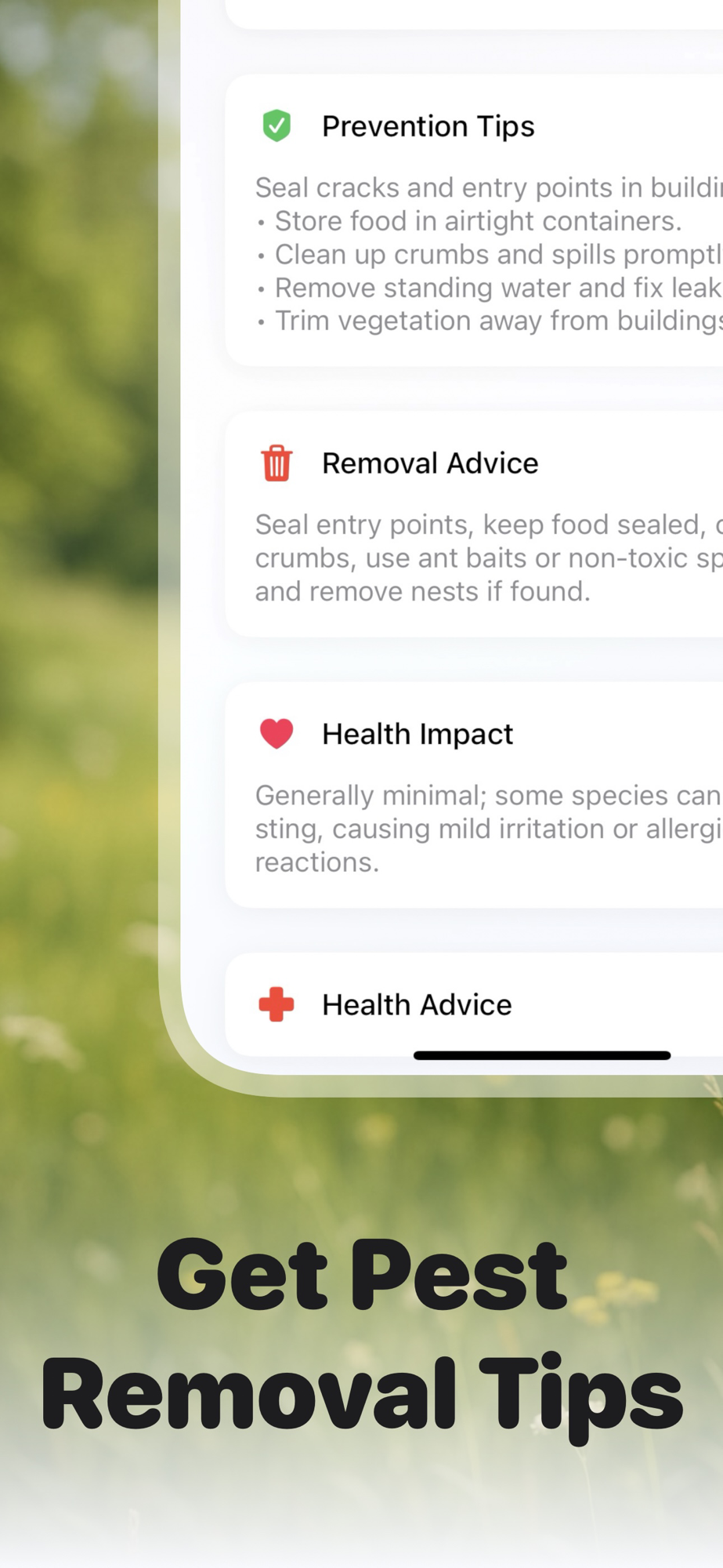 Take a photo or upload one from your gallery and get a precise species match, risk level, and removal tips in seconds.