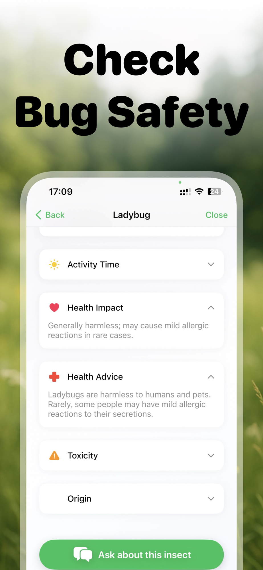 • AI chat with an entomologist — ask anything about the bug you just found.