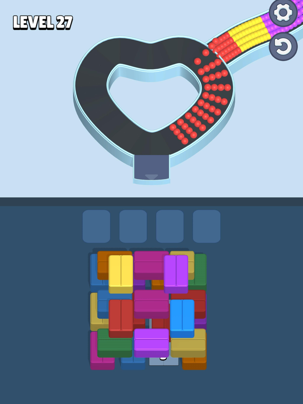 Stacked box mechanics for a fresh twist on sorting games.
