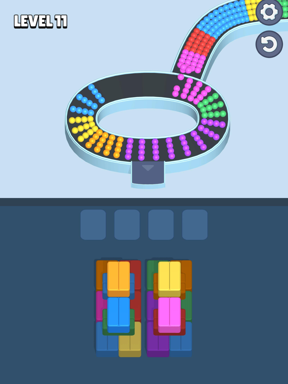 In Ball Loop Craze, guide colorful balls along moving conveyor loops and drop them into stacked boxes in the correct order. Think ahead, time your moves, and master the loop!