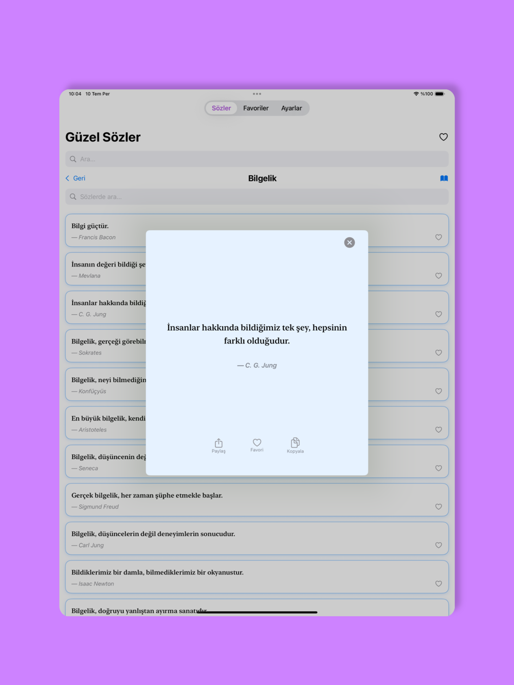 İster kendinizi motive etmek, ister sevdiklerinizle paylaşmak için aradığınız tüm güzel sözler bu uygulamada! Hemen indirin ve ilham verici sözlerle hayatınıza renk katın.