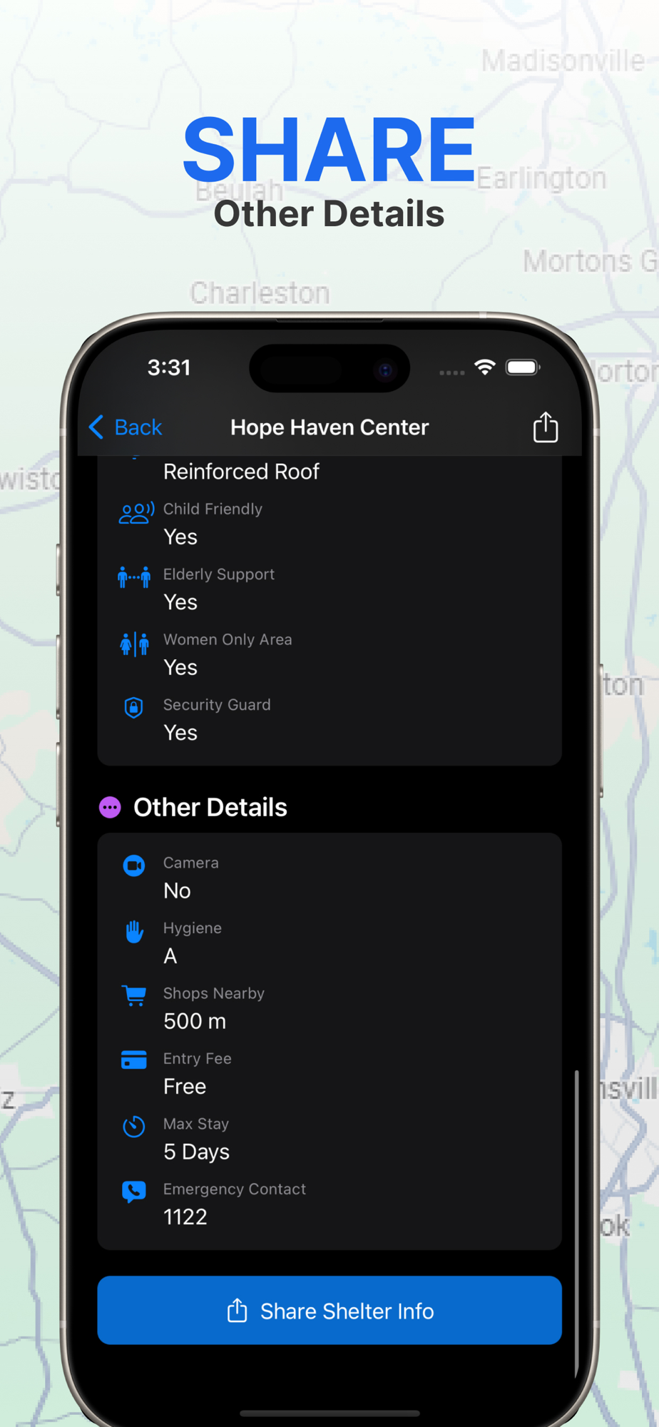 Maps Rainy Shelters Location helps you find and manage shelters with essential information like capacity, facilities, safety features, and location details. Add and track nearby shelters with ease, including pet-friendly, wheelchair-accessible, and emergency-contact options. The app allows you to store shelter details, images, and more for quick access during a crisis or emergency. Start by adding shelters to the map, and make shelter management easier than ever!