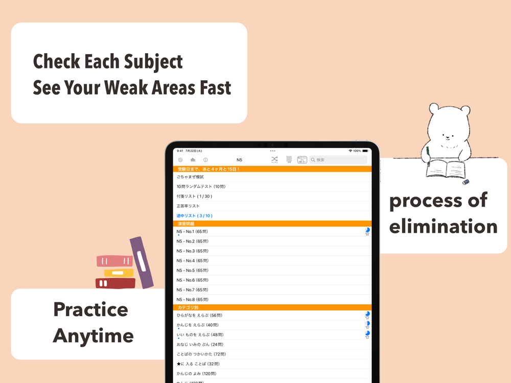 N5の演習問題を8セット掲載!!JLPTのN5試験対策の演習問題を8セット作成しました。