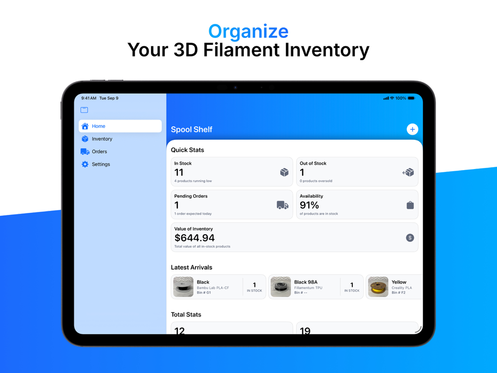Spool Shelf is a hobbyist’s ultimate 3D printing filament inventory management tool. Track inventory, orders, historical data, and more — all with just a tap!