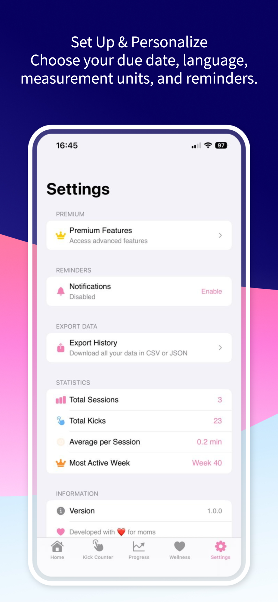 Kick Counter: Guided sessions, patterns, and reminders so you don't forget.