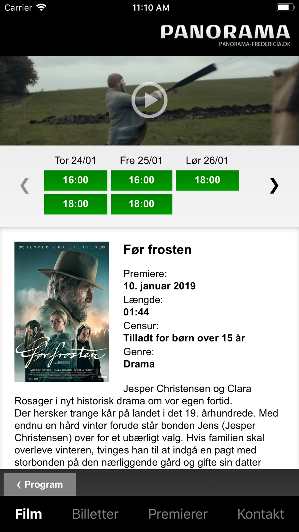 Med denne app har du mulighed for at gennemse programmet for Panorama Fredericia samt se yderligere filminformationer som trailer, censur, medvirkende skuespillere, varighed m.m.