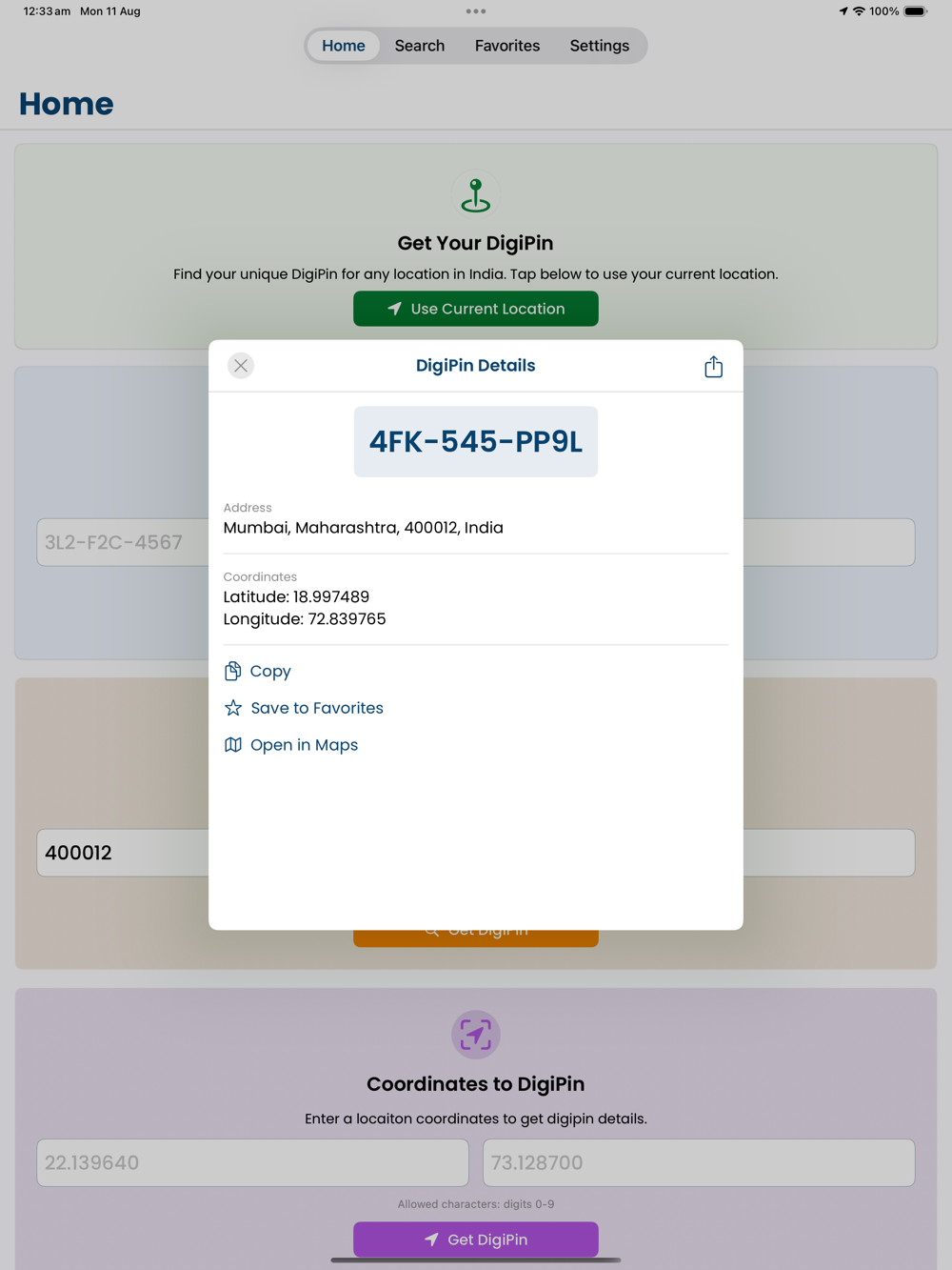 Smart Sharing: Copy and share DIGIPINs via any messaging app with a single tap.