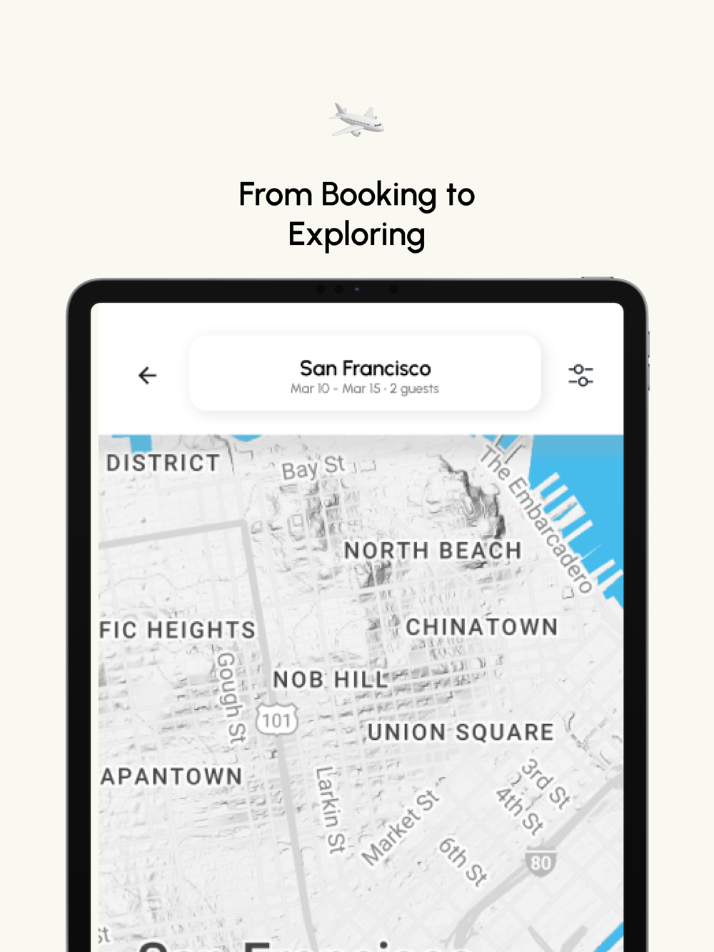 Secure your hotel directly in the app with trusted booking partners and real-time availability.