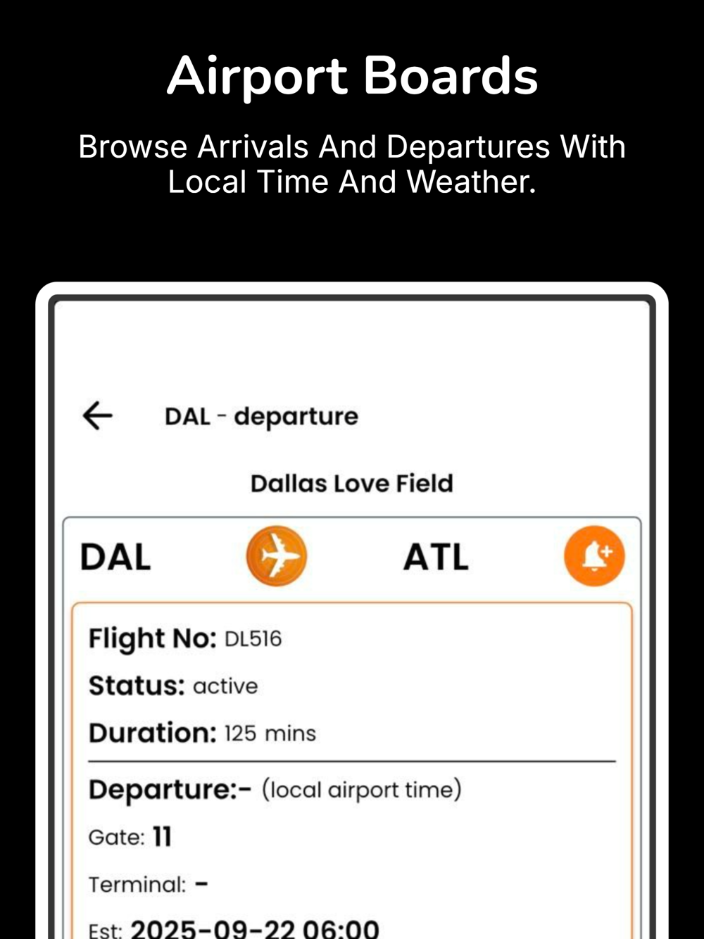 • Smart Alerts: Notifications for departures, arrivals, and flight status changes.