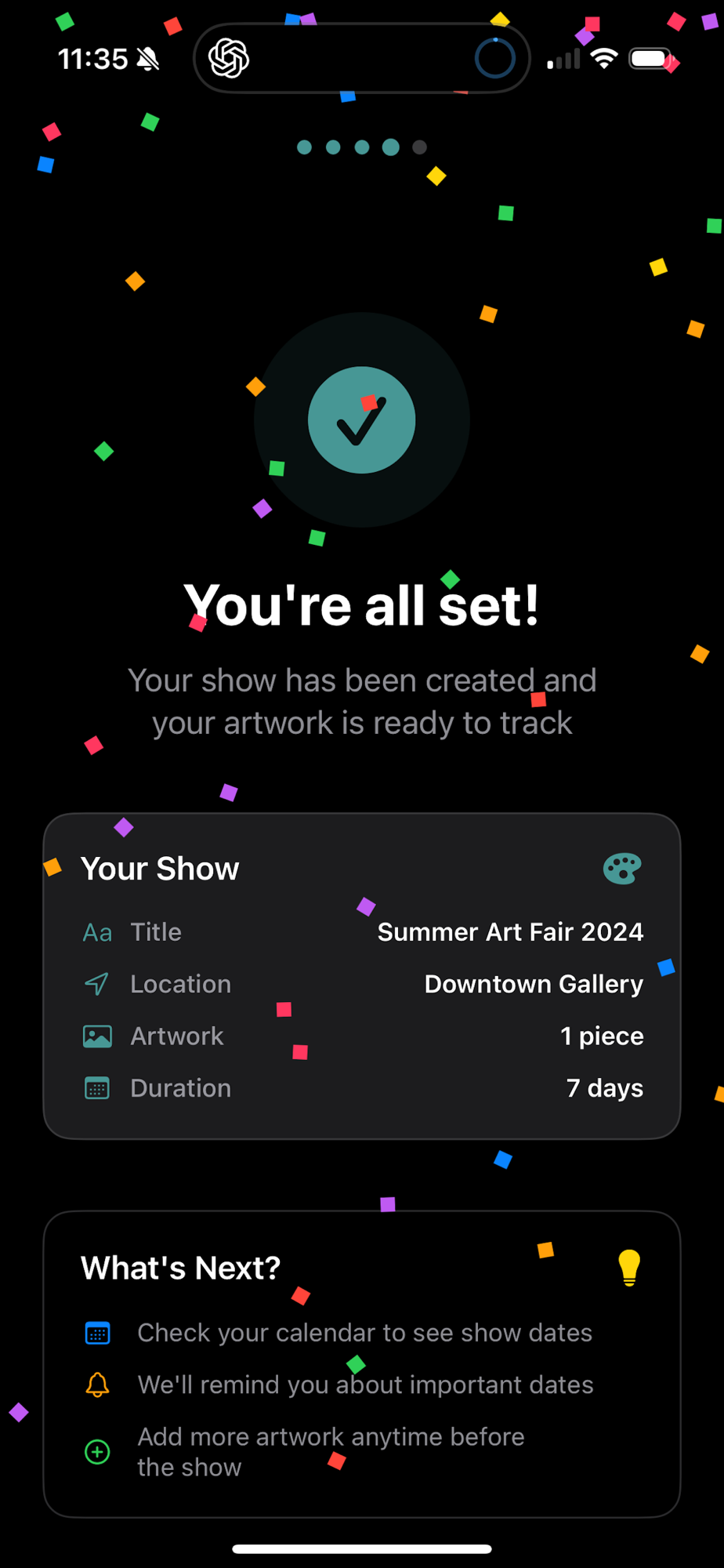Calendar View: Visualize your art show schedule with a clear, color-coded timeline.