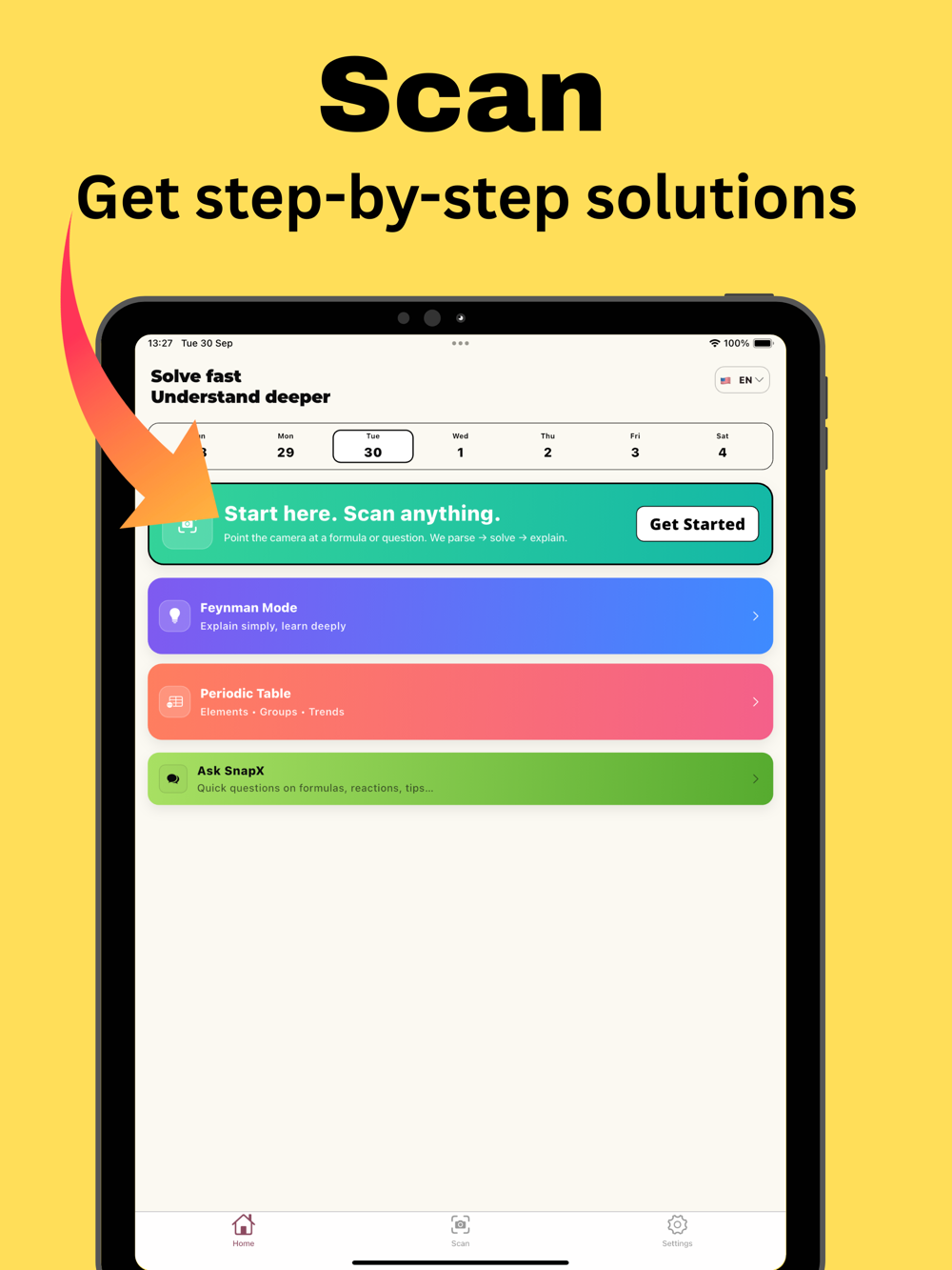 Simplemente toma una foto de tu problema de Matemáticas, Física, Química o Biología, y SnapX te dará una solución detallada paso a paso en segundos. La aplicación va más allá de solo dar respuestas con el Modo Feynman, una función especial que te ayuda a comprender realmente los conceptos de una manera simple y fácil de recordar.