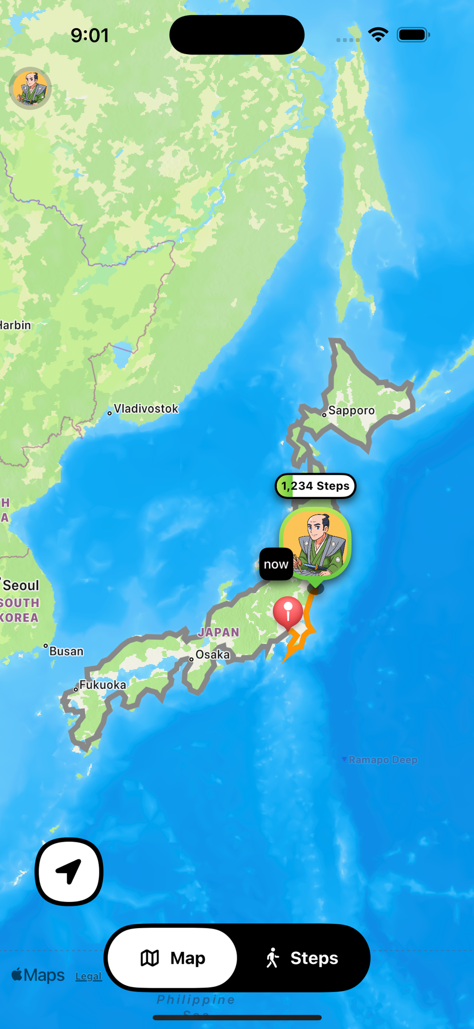 Your daily steps are automatically converted into distance. Watch your progress as you virtually travel all around Japan.