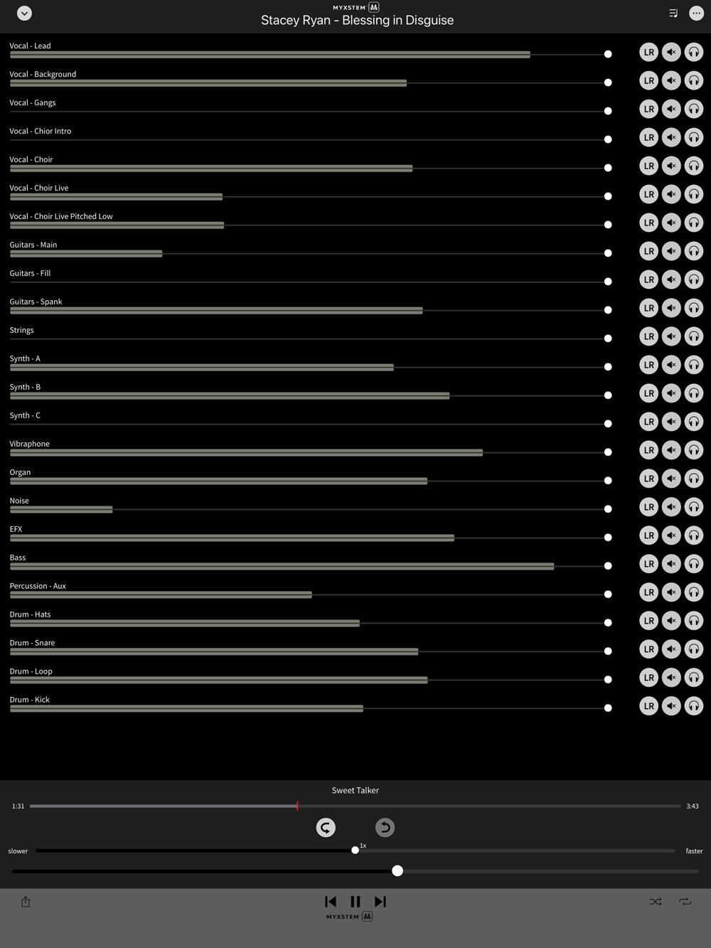 "Blessing in Disguise" the album by Stacey Ryan has been made available as a Myxstem app. Myxstem (pronounced "mix-stem") is a new format that empowers fans to completely control the listening experience by adjusting levels of each instrument (stem) to solo, mute, pan, loop and access lyrics in a fun and immersive way, similar to being at the mixing board of a recording studio.