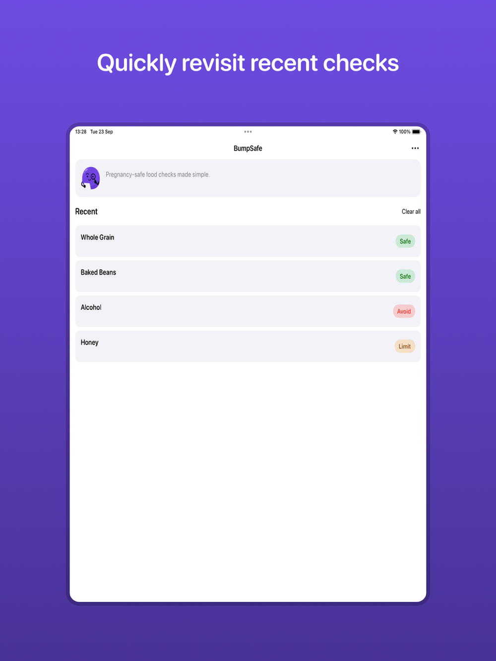 BumpSafe helps expecting parents quickly check if foods and drinks are safe during pregnancy. Simply scan, snap, or search to get clear guidance. Stay confident and informed at every meal.