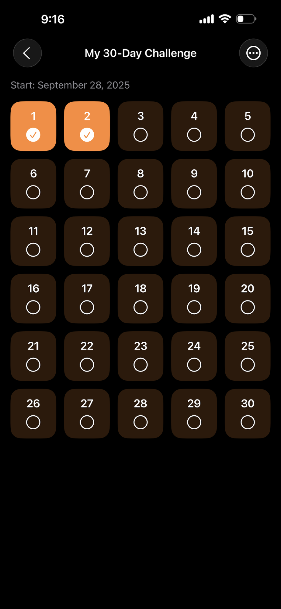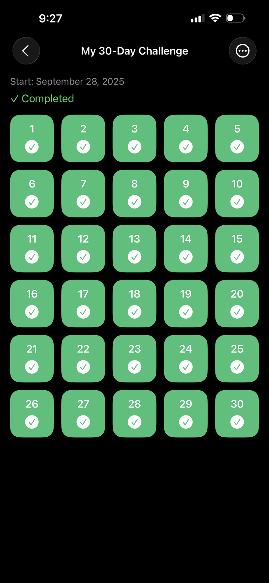 Beyond 30 is a minimalist self-mastery app built around 30-day challenges and a martial-arts belt system that marks your growth.