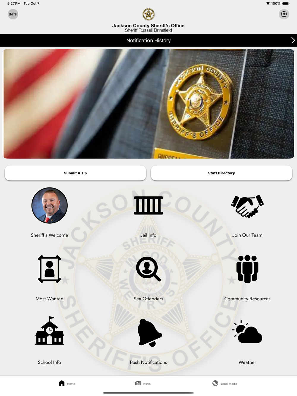 The Jackson County Sheriff’s Office (AR) mobile application is an interactive app developed to help improve communication with area residents. The Jackson County Sheriff App allows residents to connect with the Jackson County Sheriff’s Office with features like Submit a Tip, Sex Offenders, and Staff Directory, as well as providing the community the latest public safety news and information.