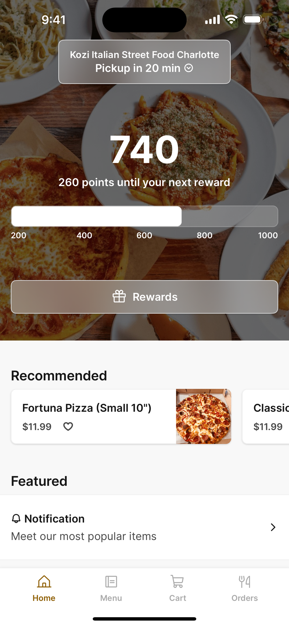 Kozi Italian Street Food Charlotte mobile app