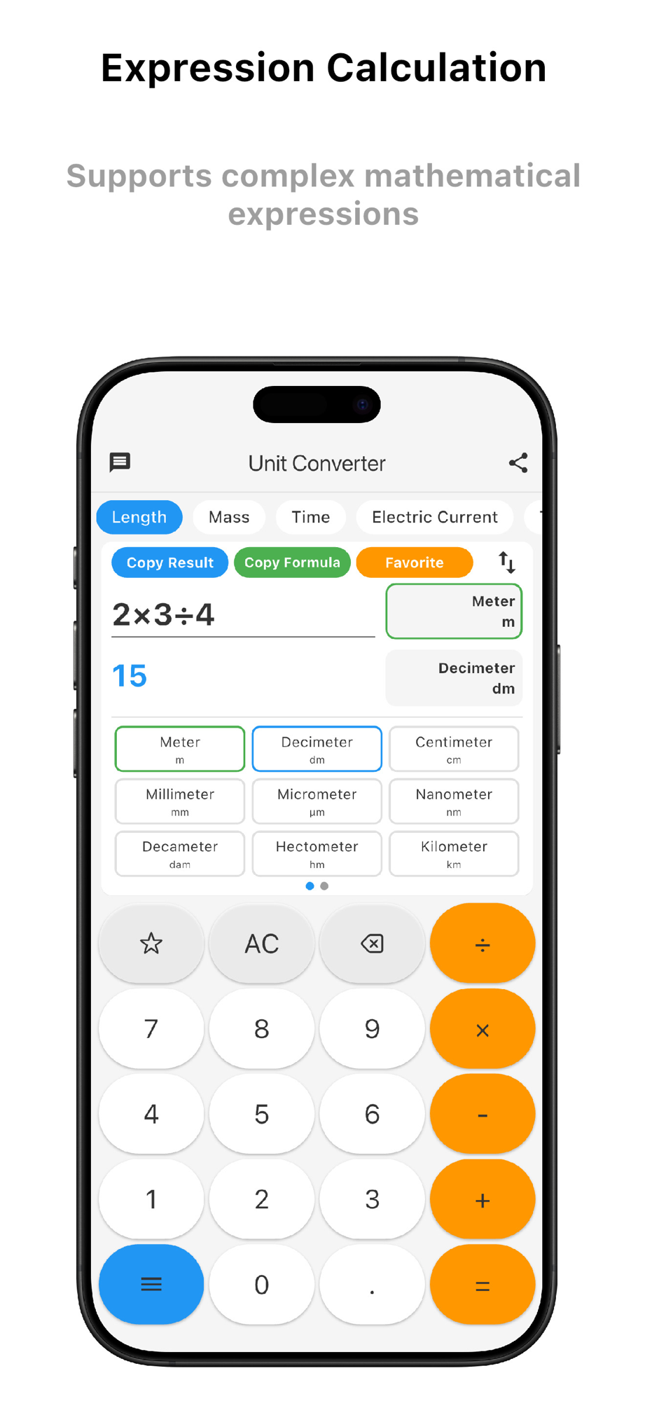 ■ Supports complex mathematical operations (e.g., 2.5 × 3.8 + 1.2 ÷ 0.4)