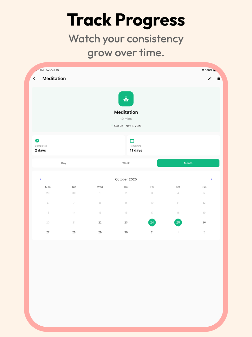 Set your challenges with customizable durations, icons, and colors to match your personal goals. Track your progress effortlessly with daily check-ins, precise reminders, and a clean, minimal design that keeps you focused without distractions.