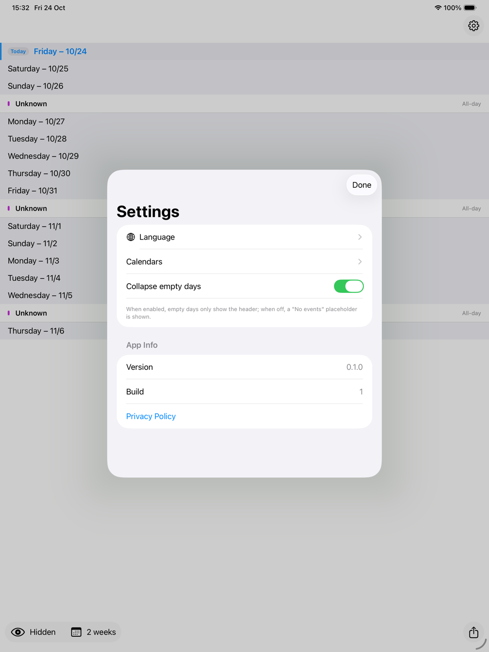 Privacy‑aware calendar activity exporter for iOS built with SwiftUI. ChronoGraph lets you select calendars & date ranges, apply privacy redaction levels, then export a high‑resolution, long (vertical) image of your recent schedule for sharing.