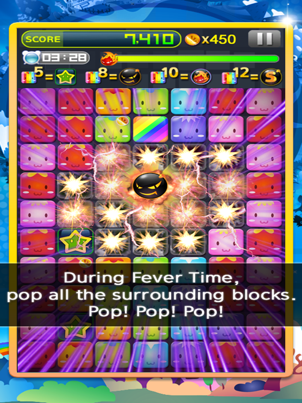 When you pop one, all the surrounding blocks pop in synchronization during Fever Time.