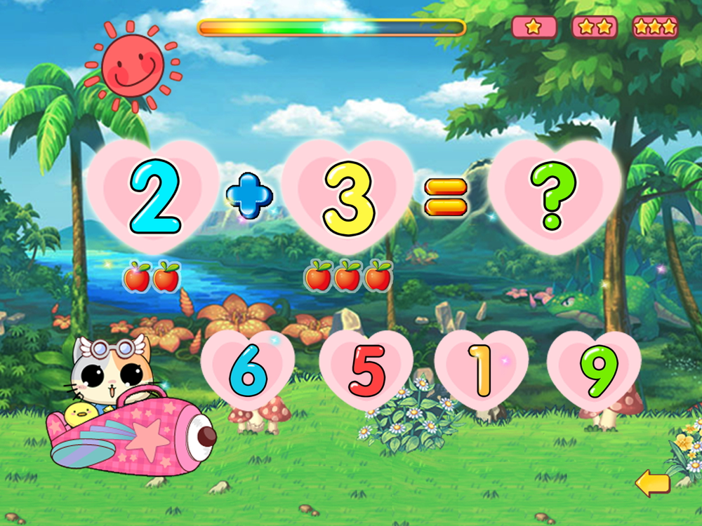 从3岁到8岁的宝宝都适用于本软件,在可爱小猫的带领下,通过形象的画面表示和悦耳的童声,让宝宝在交互式的教育中学会基本的数学本领。
