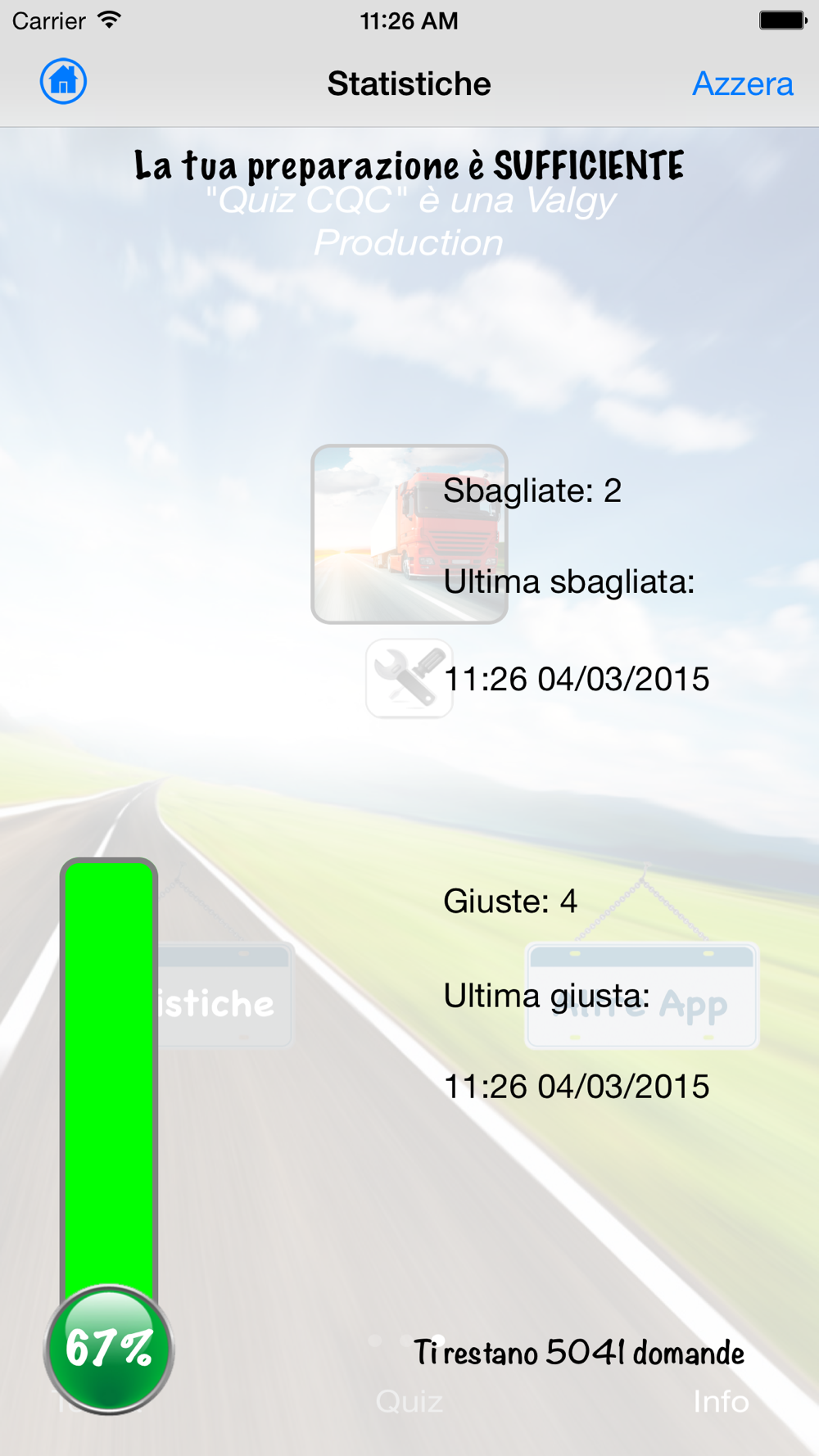 "Quiz CQC" è l'unica app che contiene TUTTI i quiz ministeriali per il rilascio della Carta di Qualificazione del Conducente (CQC). Contiene sia la parte comune che le parti specifiche per merci e persone.