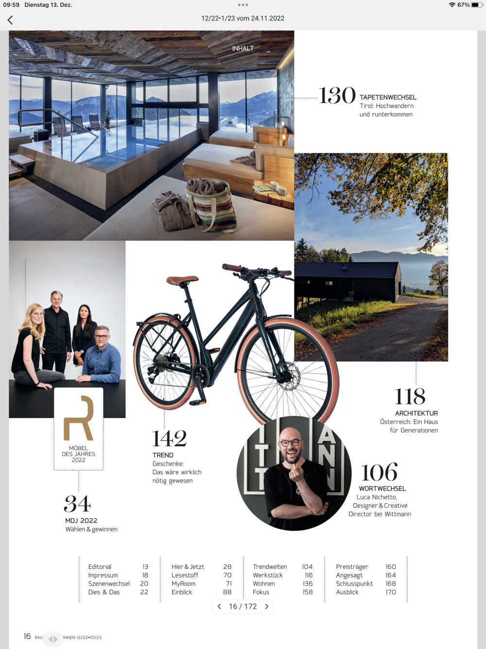 Sie haben in der App die Möglichkeit, sämtliche Weblinks direkt anzuwählen, Seiten mit Lesezeichen zu versehen sowie eine Volltextsuche zu verwenden. Ausserdem sind alle E-Mail-Adressen, Seitenverweise sowie das Inhaltsverzeichnis nutzerfreundlich verlinkt. Das Herunterladen dieser App ist kostenlos. Darüber hinaus können Einzelausgaben oder ein kostengünstiges Jahresabo (10 Ausgaben) gekauft werden. Abonnenten der Printausgabe erhalten mit der Aborechnung einen kostenlosen Zugang mittels Login.