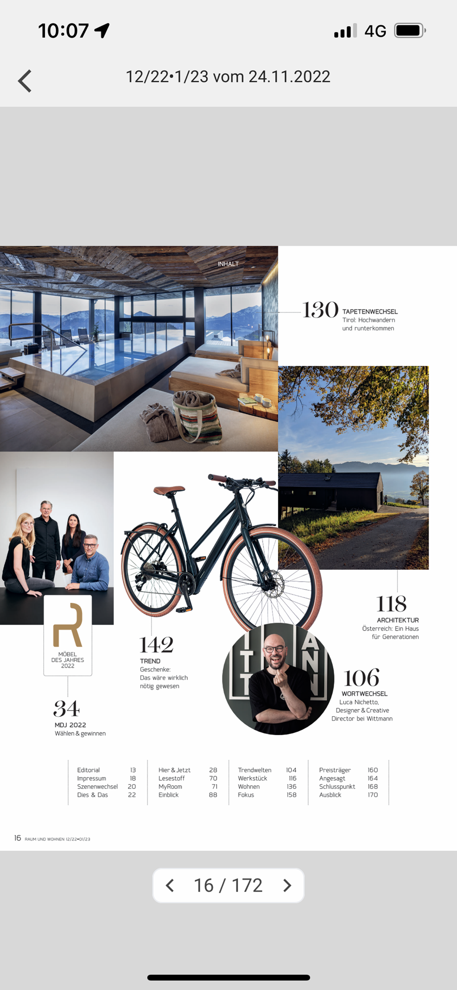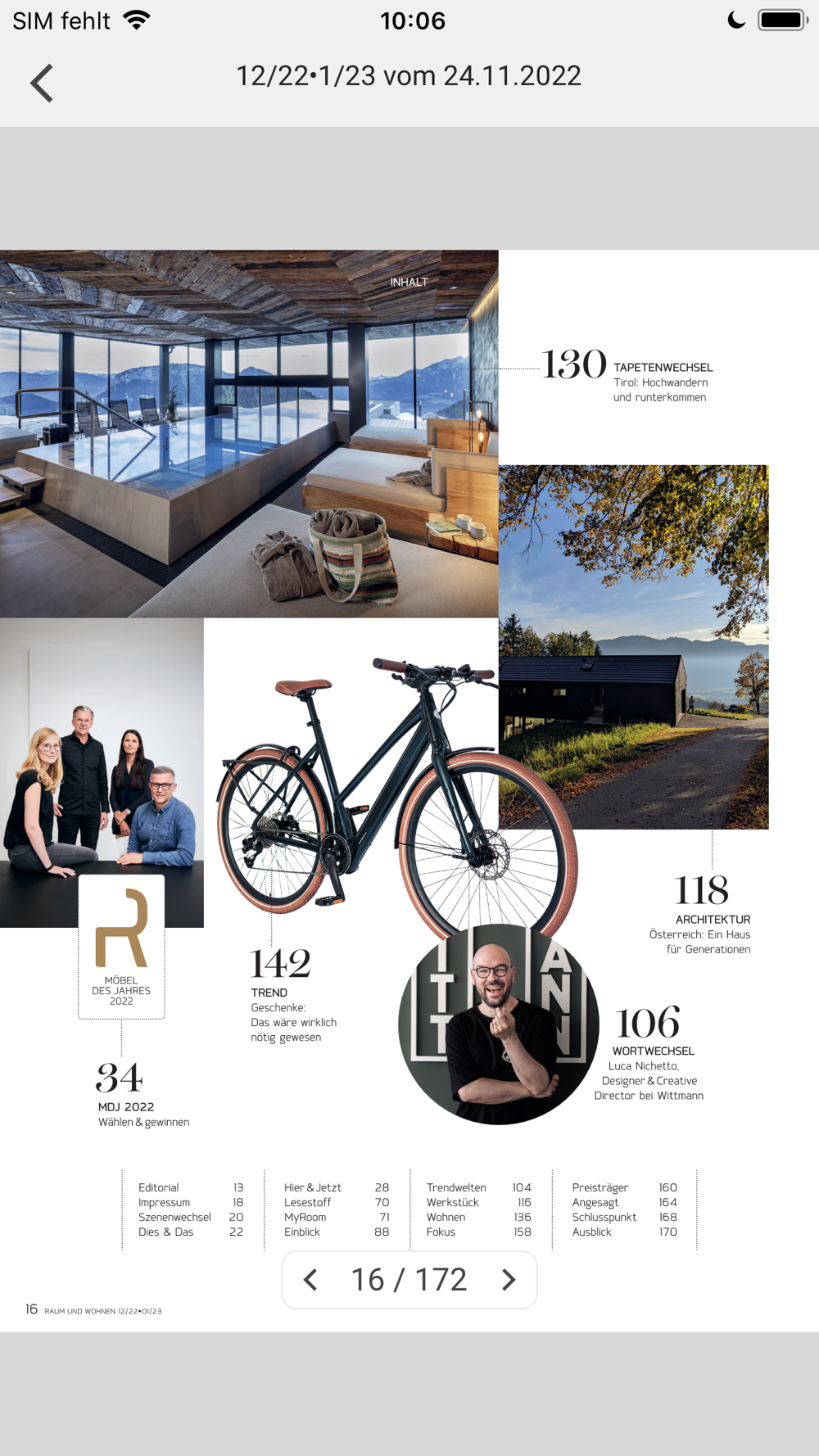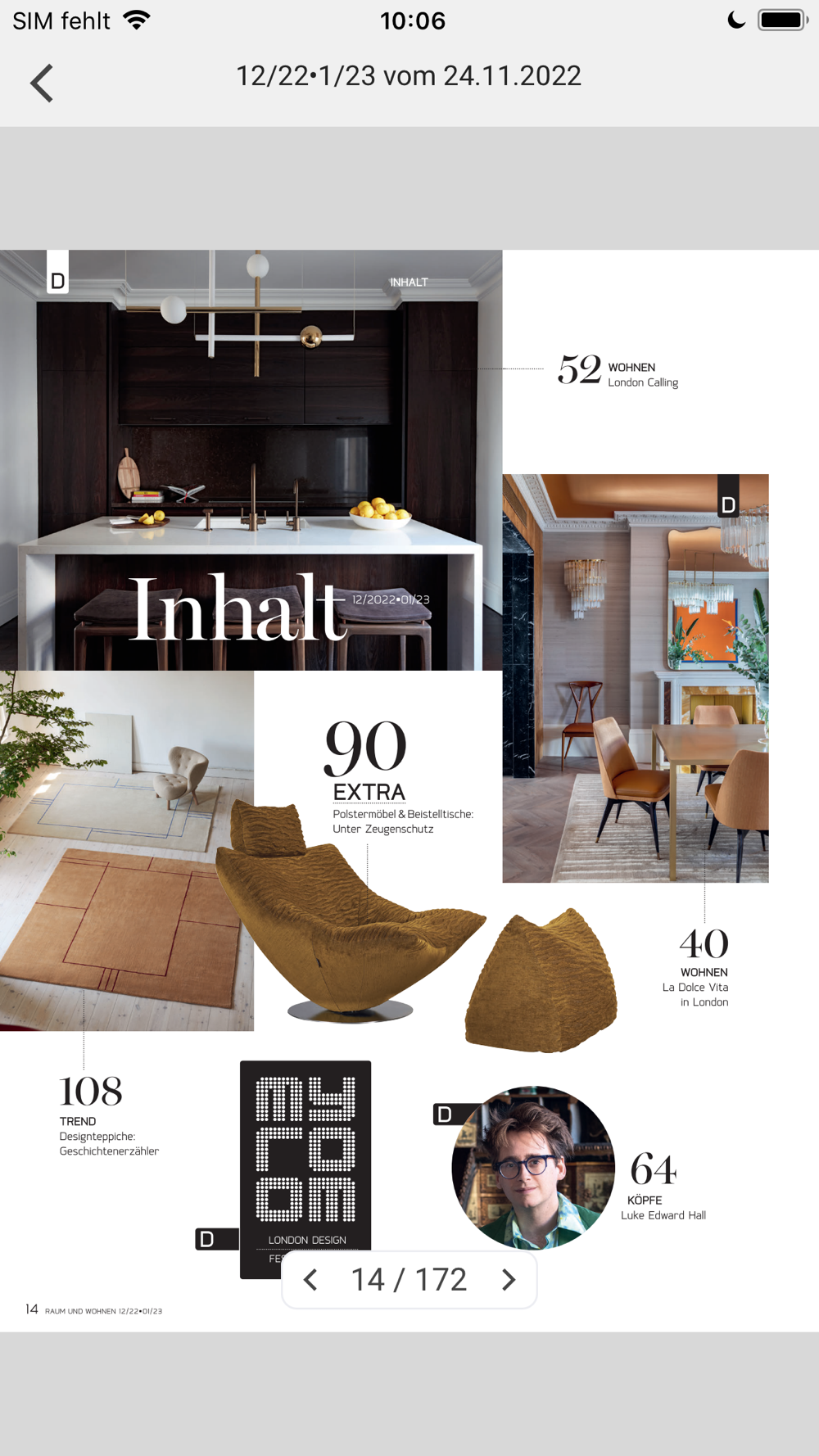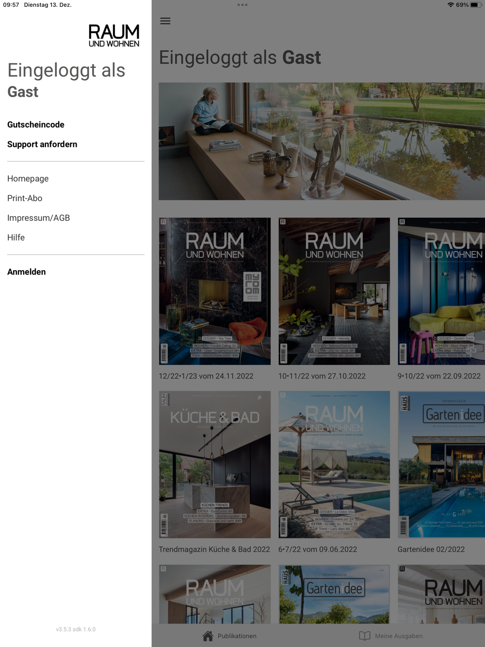 Aktuell können Sie in der App die digitalen Einzelausgaben der Zeitschrift RAUM UND WOHNEN zum Preis von CHF 5.00 kaufen. Zusätzlich besteht auch die Möglichkeit, ein Jahresabo (10 Ausgaben) zum Preis von CHF 45.00 zu lösen.