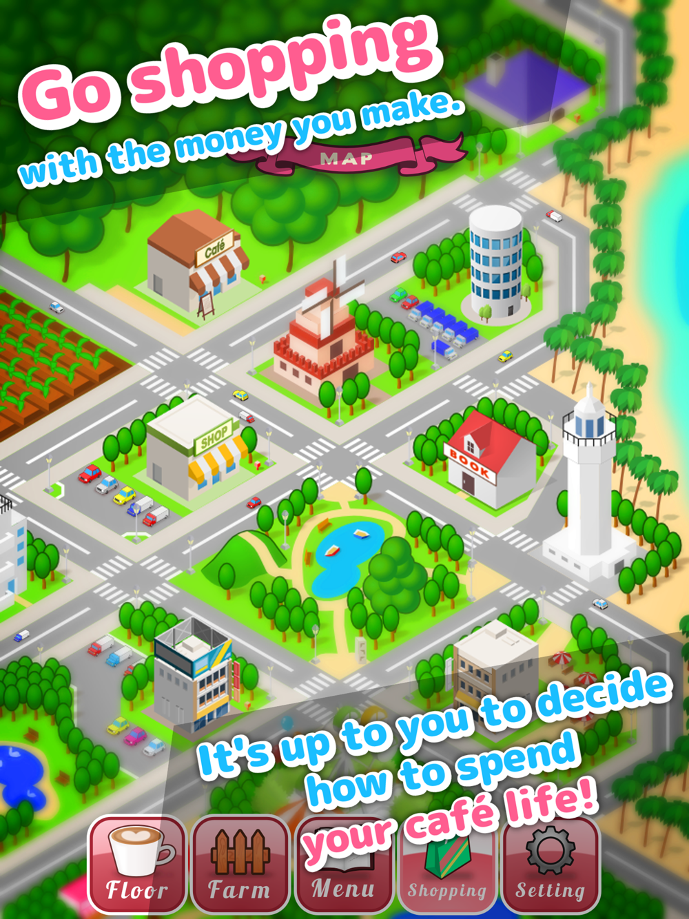 Players can harvest ingredients from the farm, create menu and purchase items to expand the store.