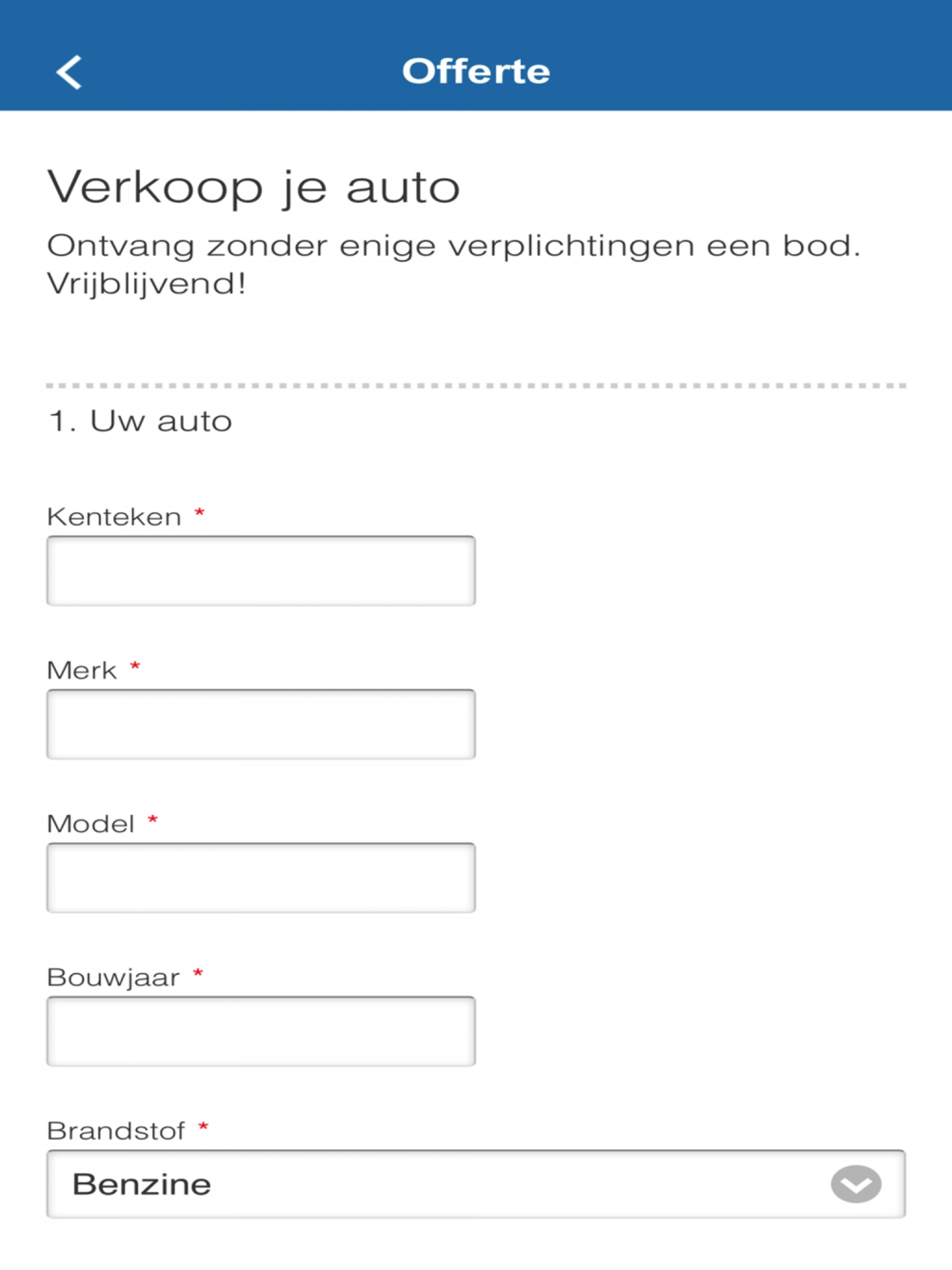 1. Via het offerteformulier kunt u verschillende details over uw voertuig vermelden.