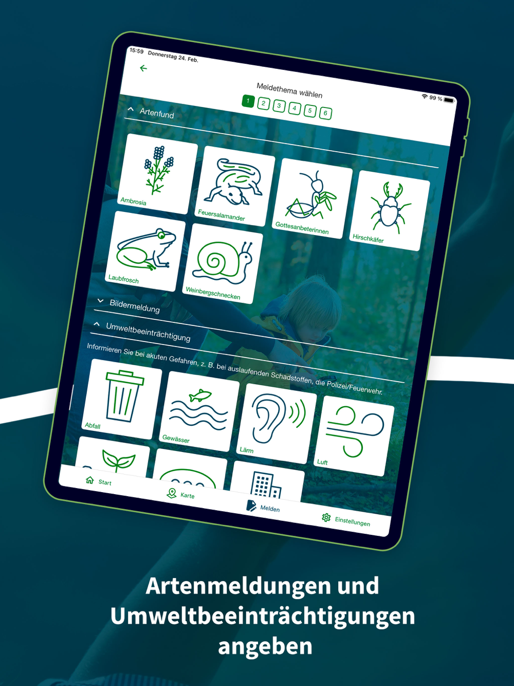 • lokale Beobachtungen standortgenau erfassen und an die Umweltbehörden melden.