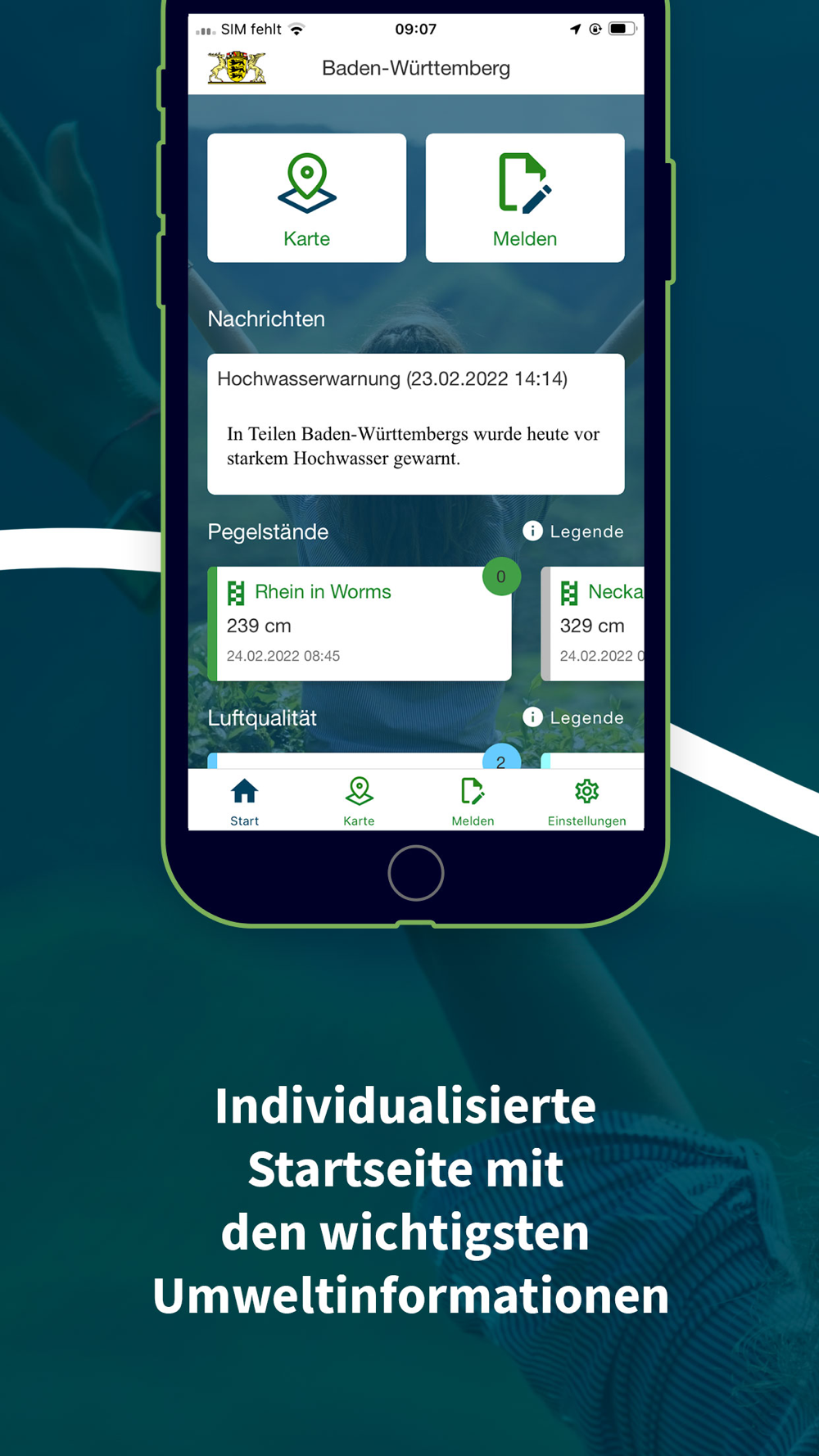 • Luft-, Pegel- und Kartendaten zu Ihrem Standort