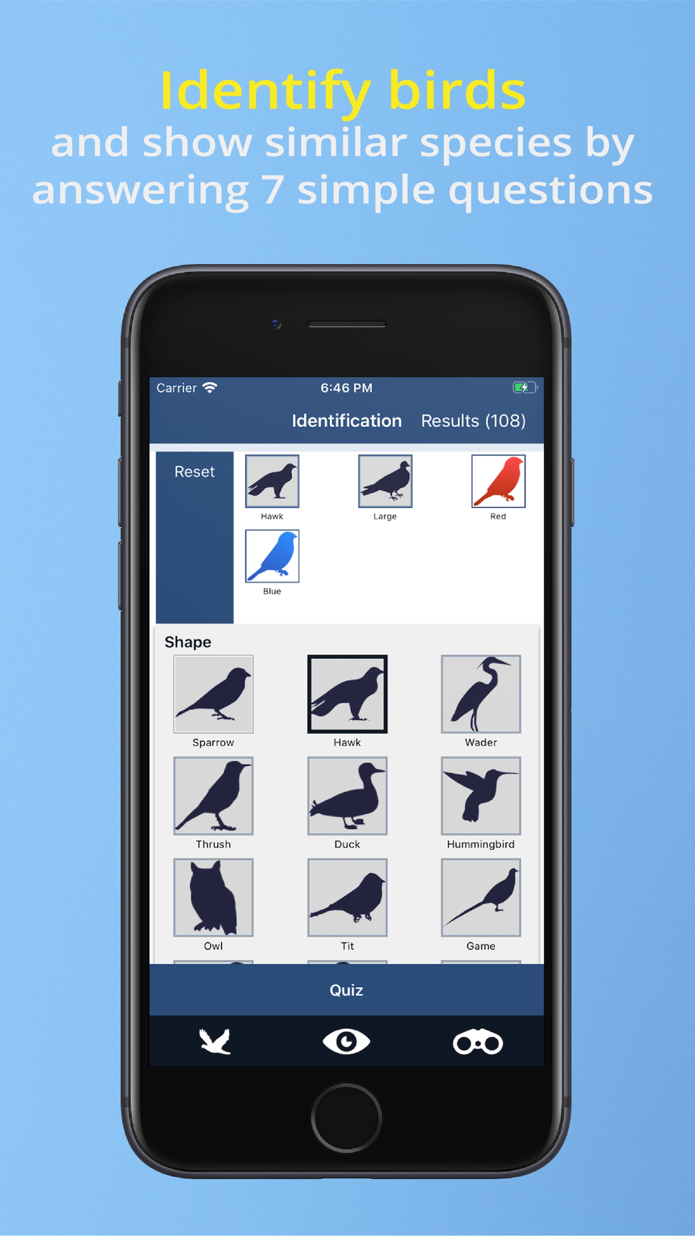 Have you ever seen a bird wondered "What kind of bird is that?" Bird Id is a great tool to help you quickly and easily identify 240 birds of North America. Its great fun to use too. For the bird enthusiast there is anatomical, ecological and taxonomic information too.