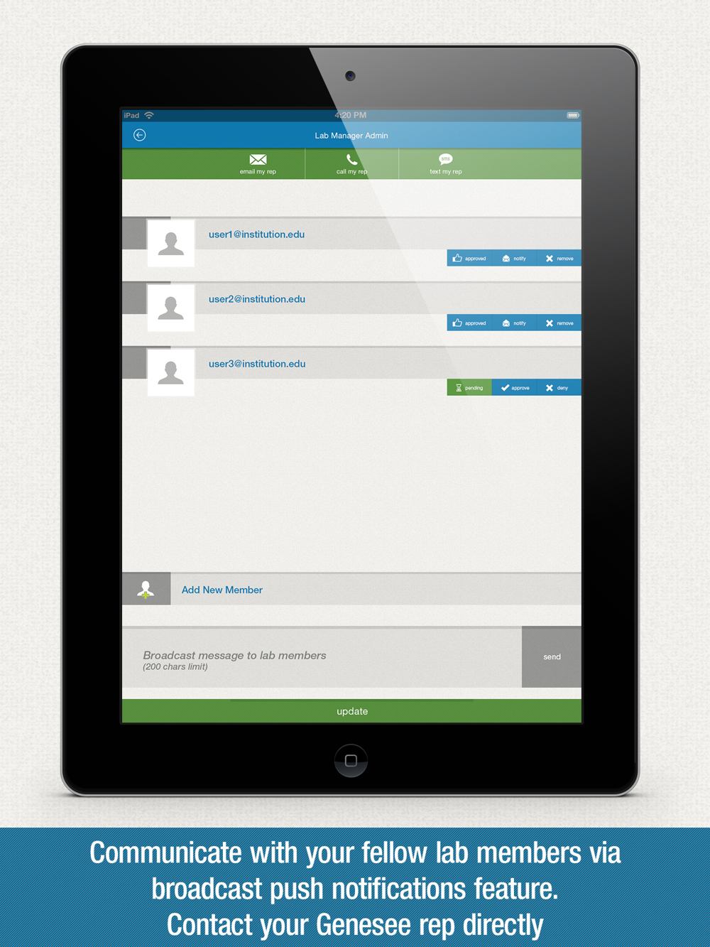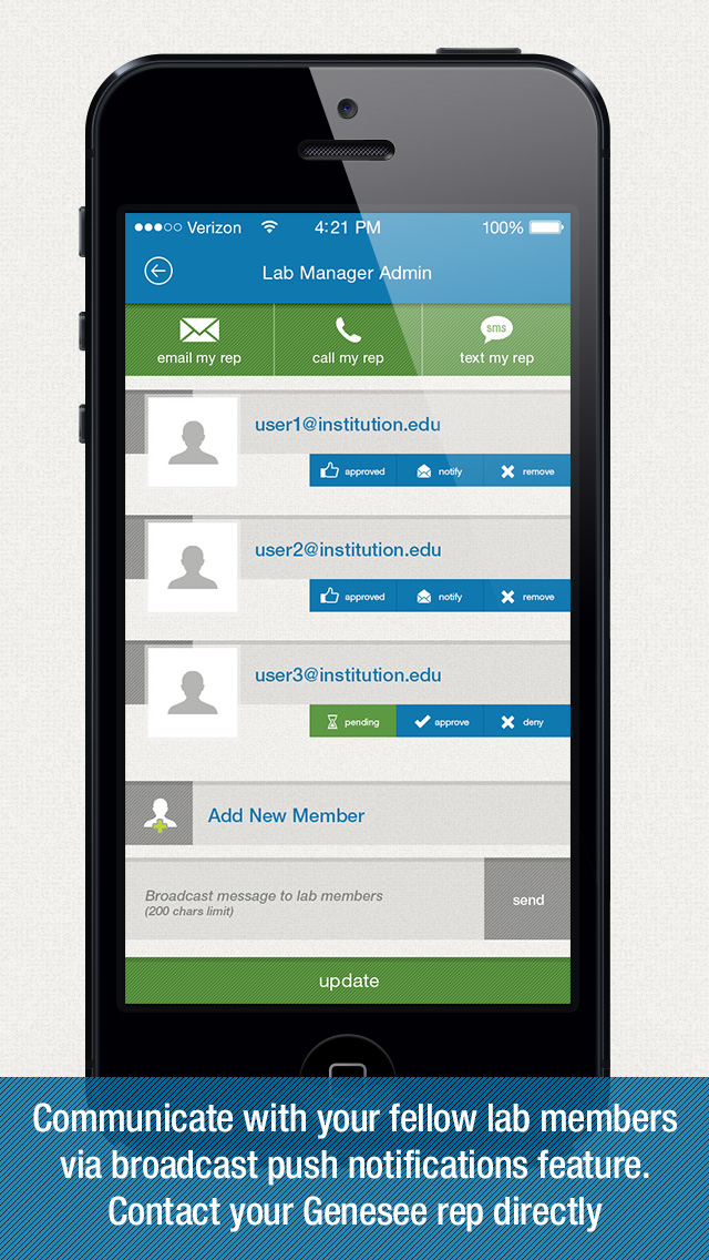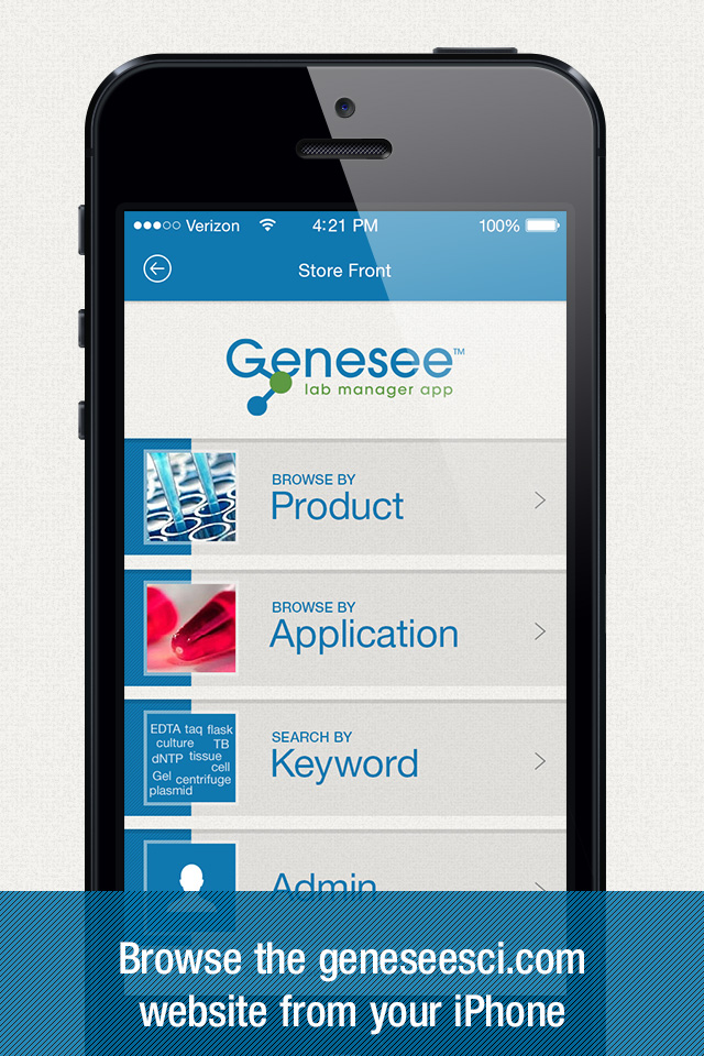 the entire geneseesci.com catalog from your iPhone and add items to the Lab