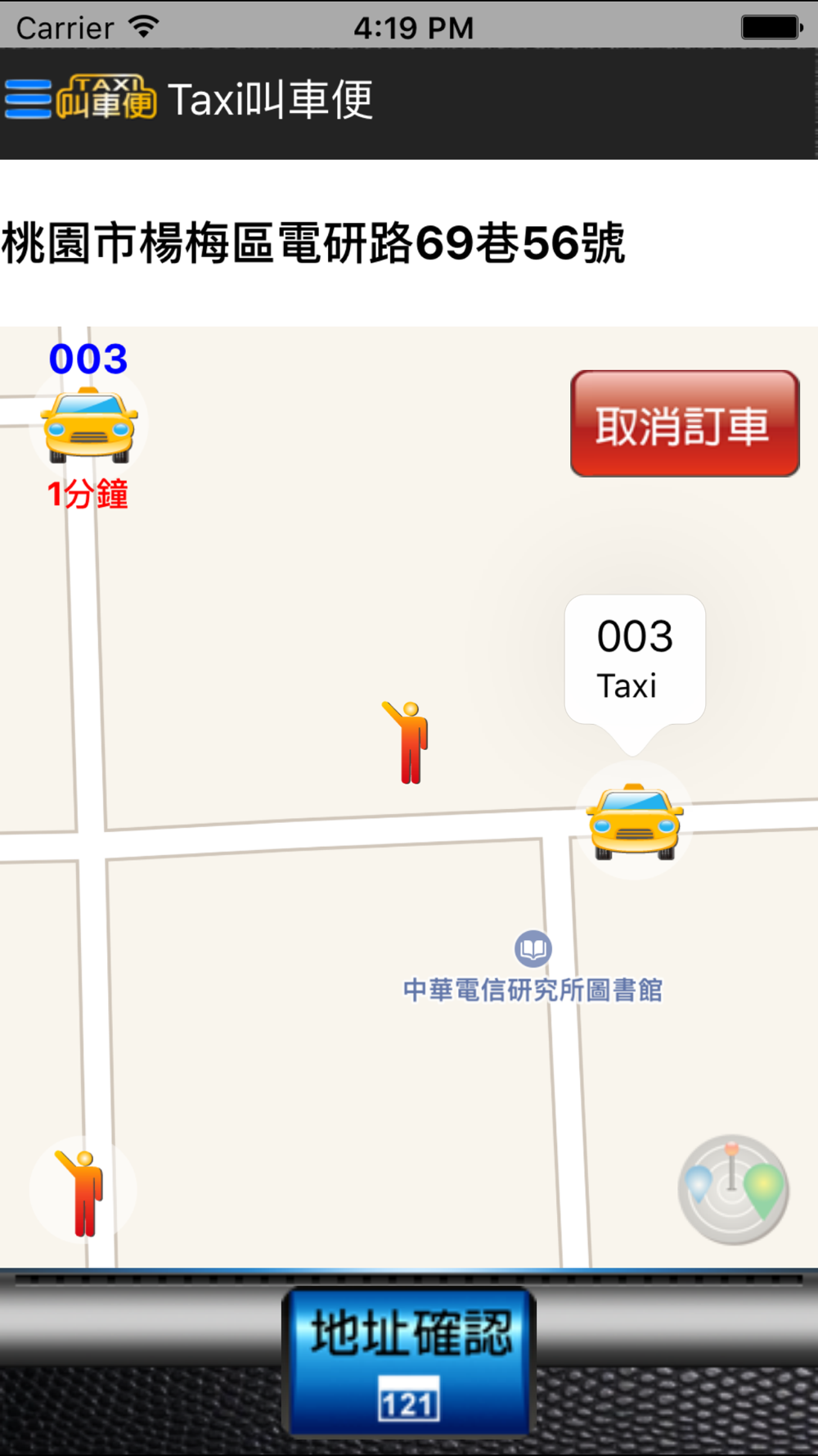 2.安全監控:系統派遣車輛後,持續記錄車輛位置、軌跡,達到安全搭車的目的