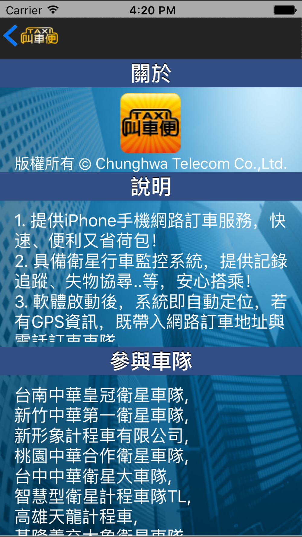 (4).台中市、南投縣市地區:(中華聯盟)台中中華衛星大車隊。