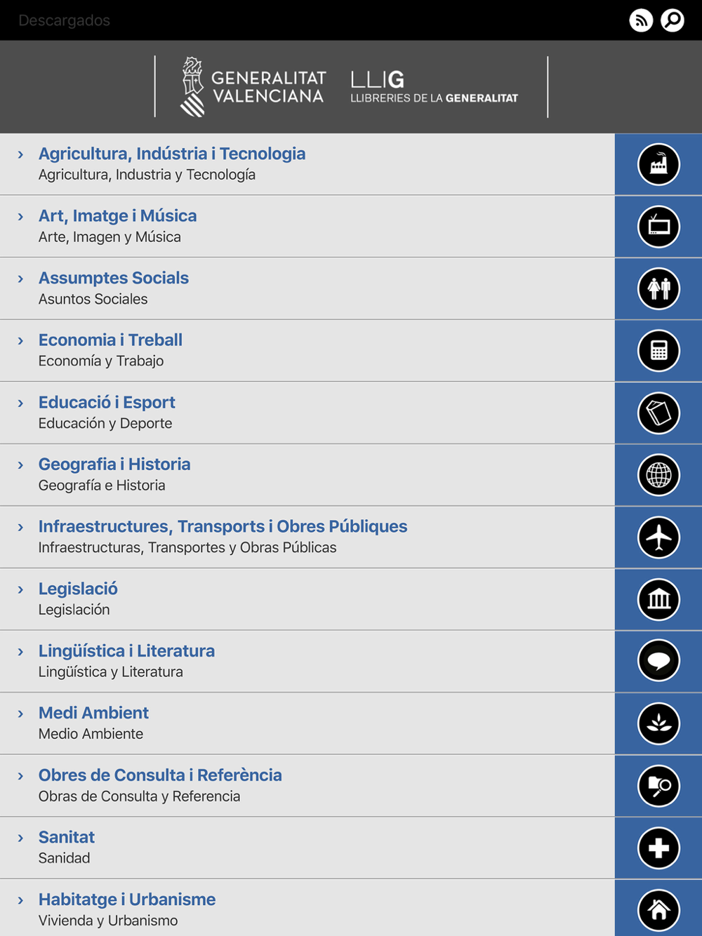 En aquest espai bibliogràfic es poden trobar volums de tot tipus editats per les diferents entitats valencianes: lleis i normatives aprovades pel Consell en els últims anys, catàlegs, publicacions relatives a estudis i treballs d'àrees diverses (flora i fauna de la Comunitat, agricultura, medi ambient, etc).