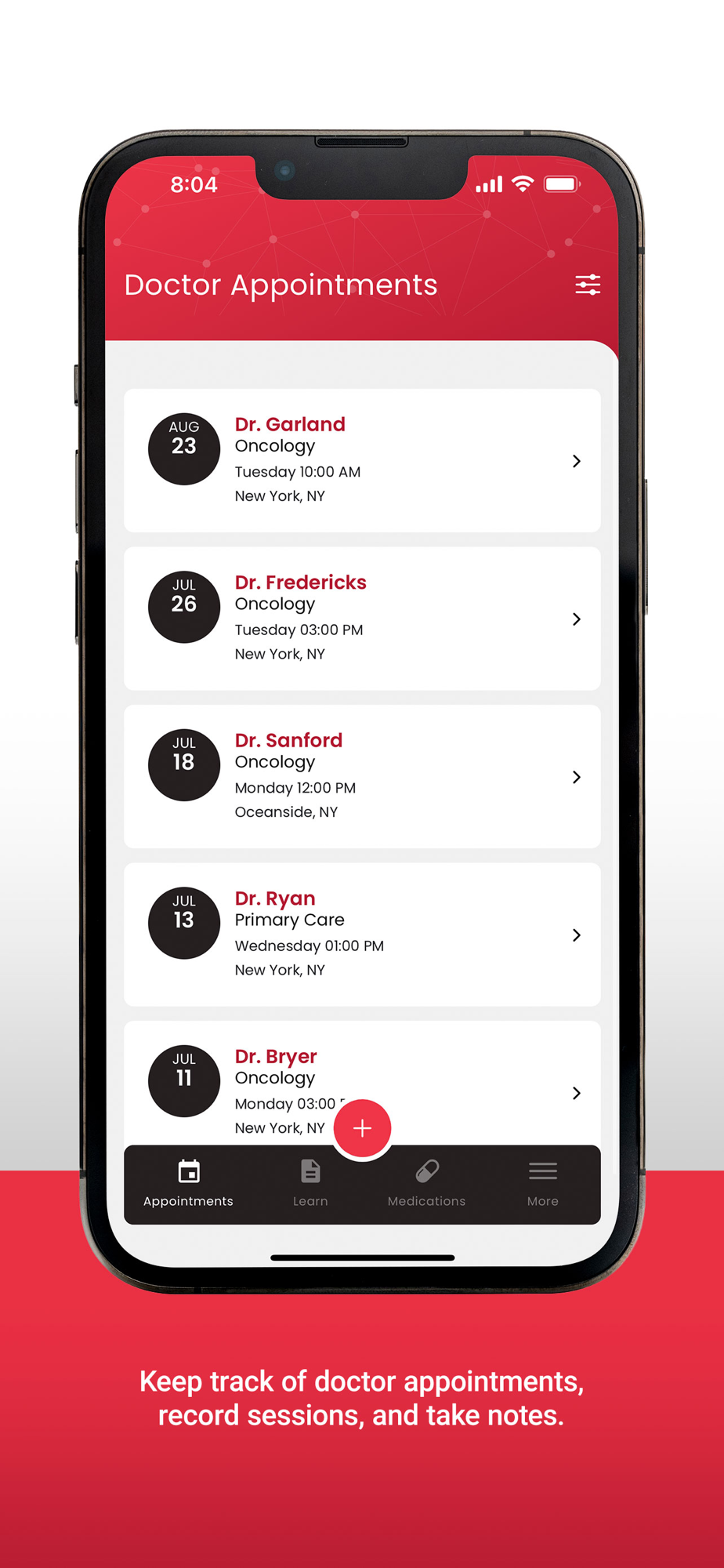 - Keep track of doctor appointments, questions to ask your doctor, and record sessions
