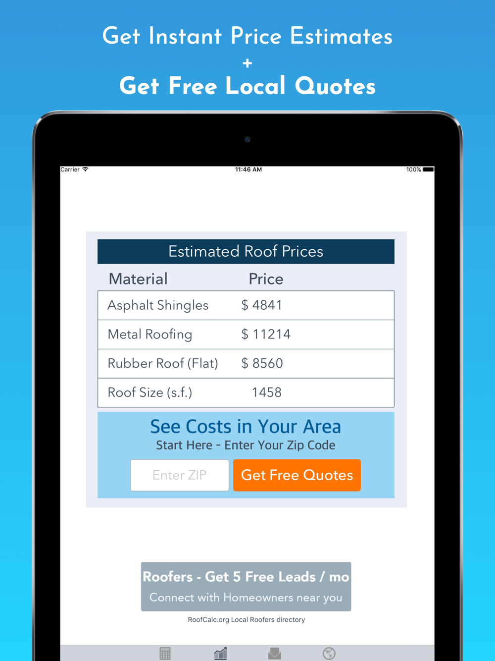 Contractor Mode lets roofer change Roof Prices, Tear Off cost and more! Join the RoofCalc Local directory to get roof leads!