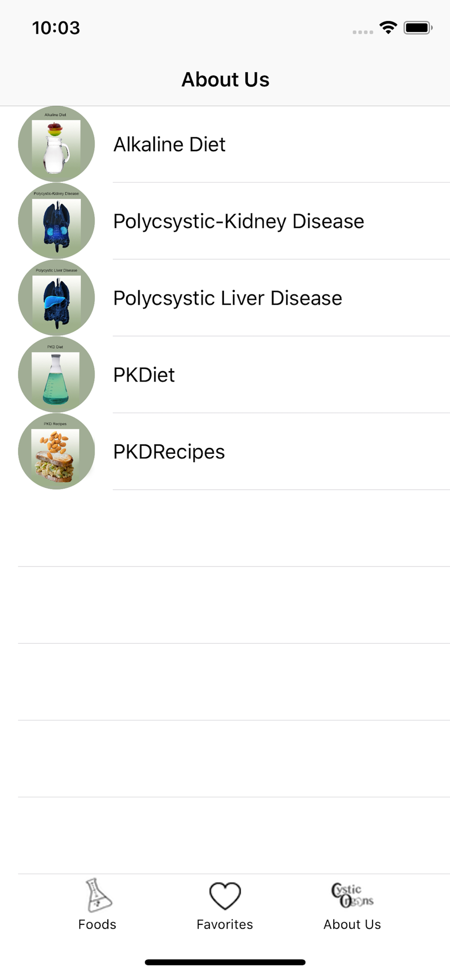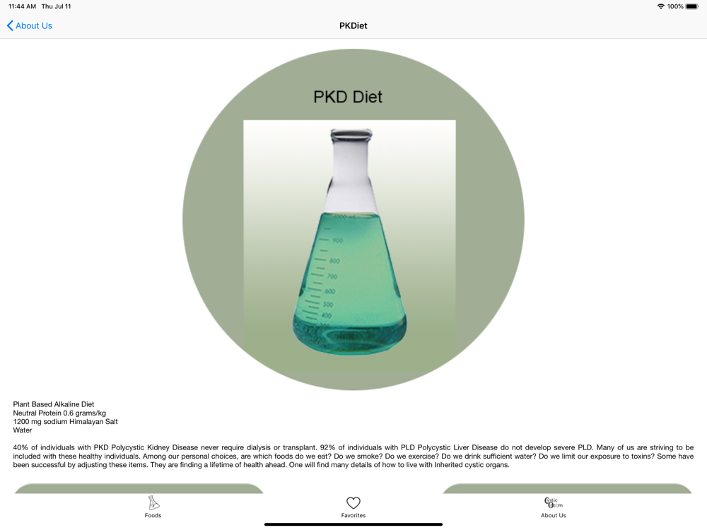 Have you ever wondered what foods are beneficial for you if you are on an Alkaline Diet? This app is great for people with PKD Polycystic Kidney Disease and PLD Polycystic Liver Disease. It provides a searchable list for you to browse while at the market or shopping for items. Certain foods, chemicals, herbs, & supplements are harmful to individuals with cystic organ disease. Certain things are beneficial. This app clarifies which foods are to be enjoyed and which are to be avoided to help you maintain health and alkalinity.