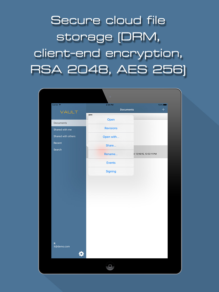 Vault is the easiest to use file sharing app with advanced DRM and pdf signing features.